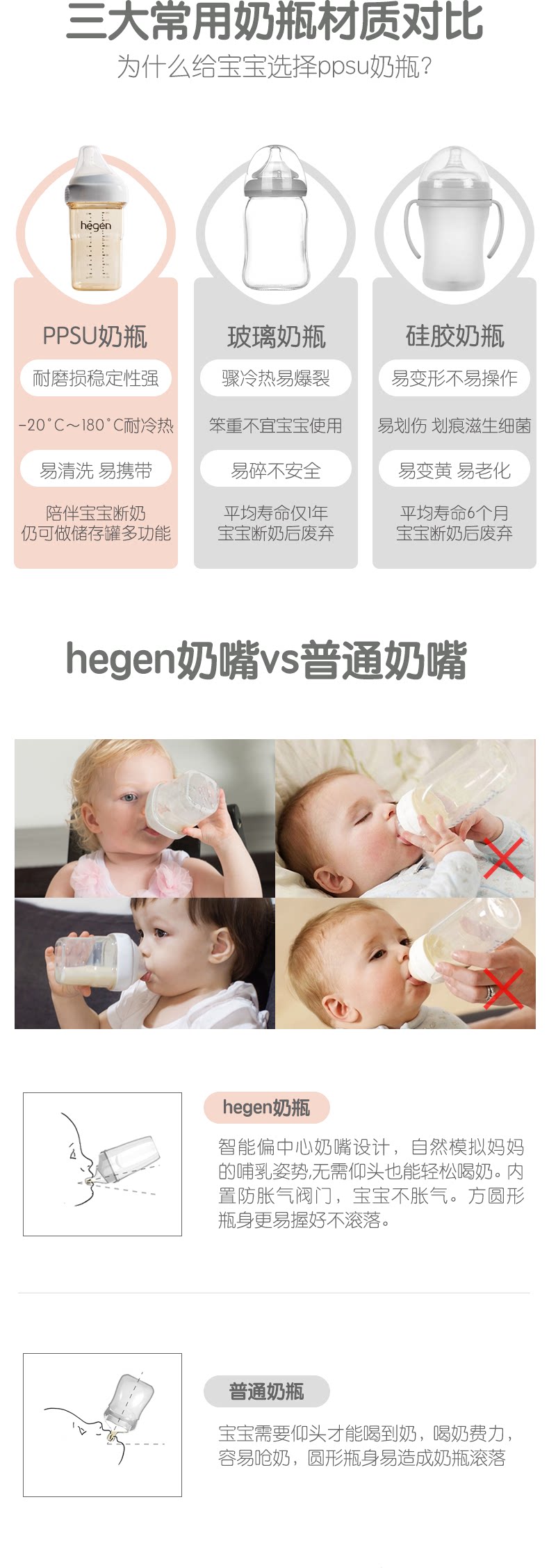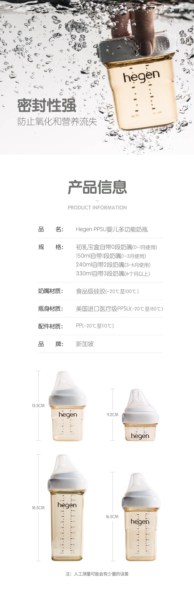 新加坡Hegen新生儿宽口奶瓶PPSU婴儿断奶神器宝宝仿母乳耐摔