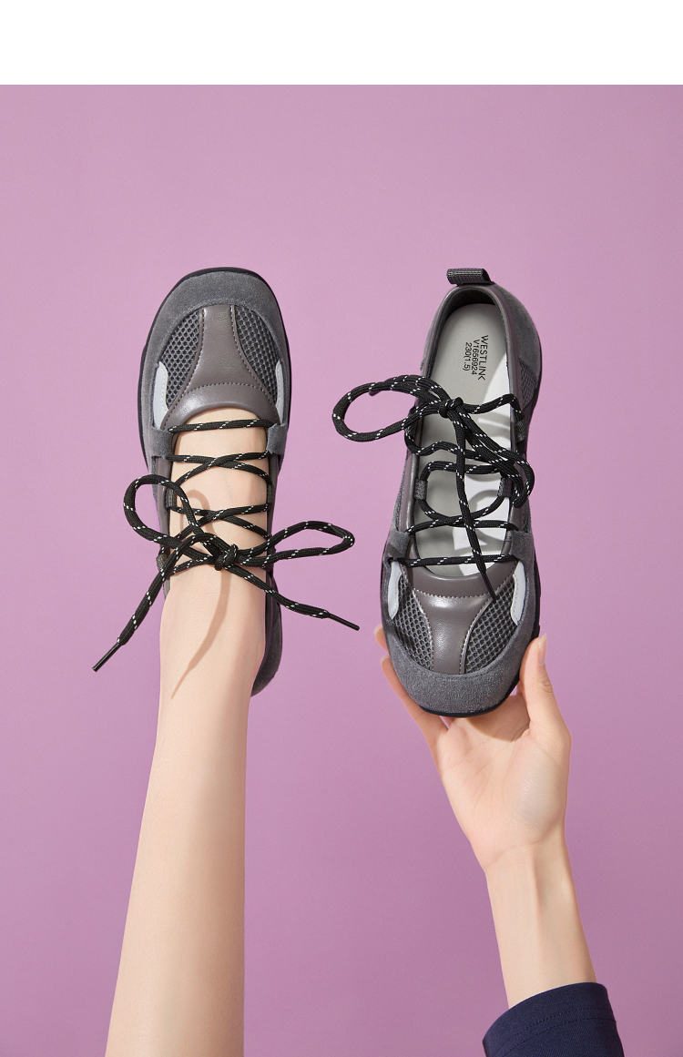 西遇芭蕾德训鞋女新款秋季复古浅口玛丽珍圆头轻便软底运动鞋V1656924