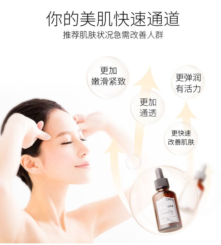 ★ fracora 是市面上少有的太盘原液,除了对于初期皱纹像鱼尾纹、法令纹、抬头纹这些有良好的成效。同时还能增加肌肤弹性、光泽度,让皮肤更容易吸收护肤品。除了保湿以外,还能预防斑点和黑色素的沉淀。怀孕期间也可以预防妊娠班以及细纹等衰老问题。