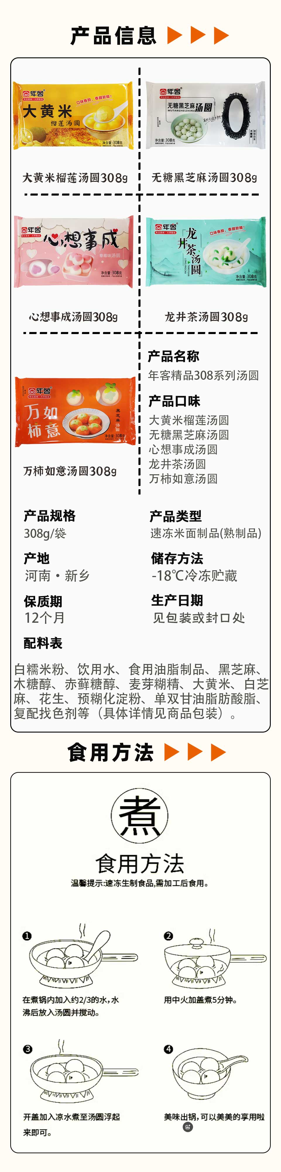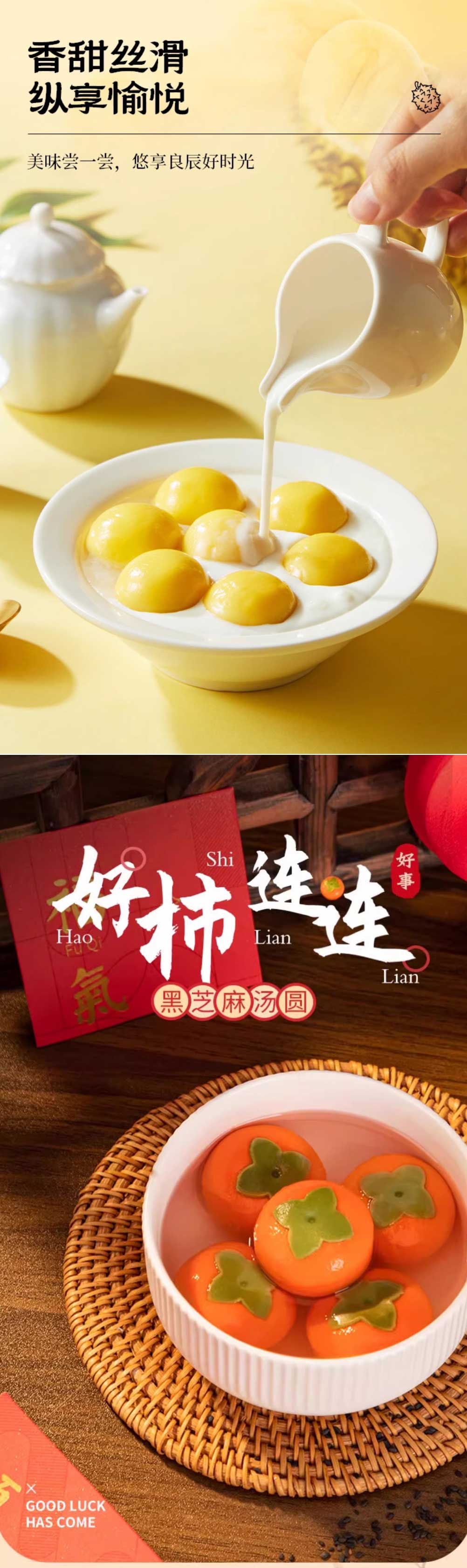 25J【会员专享】年客精品308系列汤圆(大黄米榴莲/万柿如意/心想事成/龙井茶/无糖黑芝麻) 308g/袋 2袋/套 20袋/件