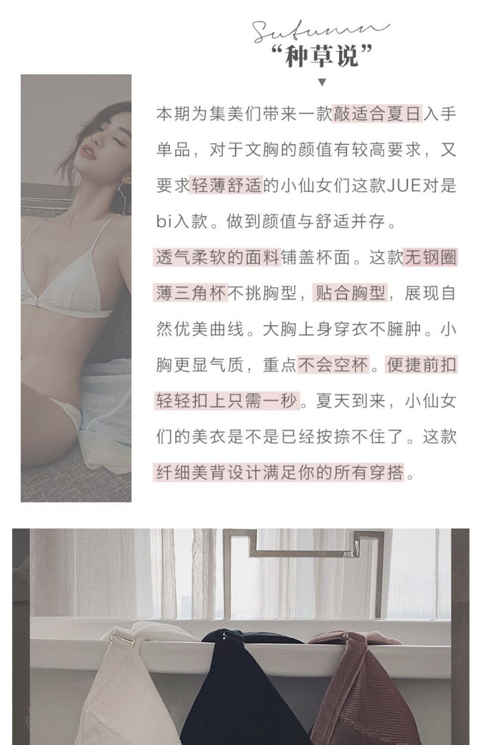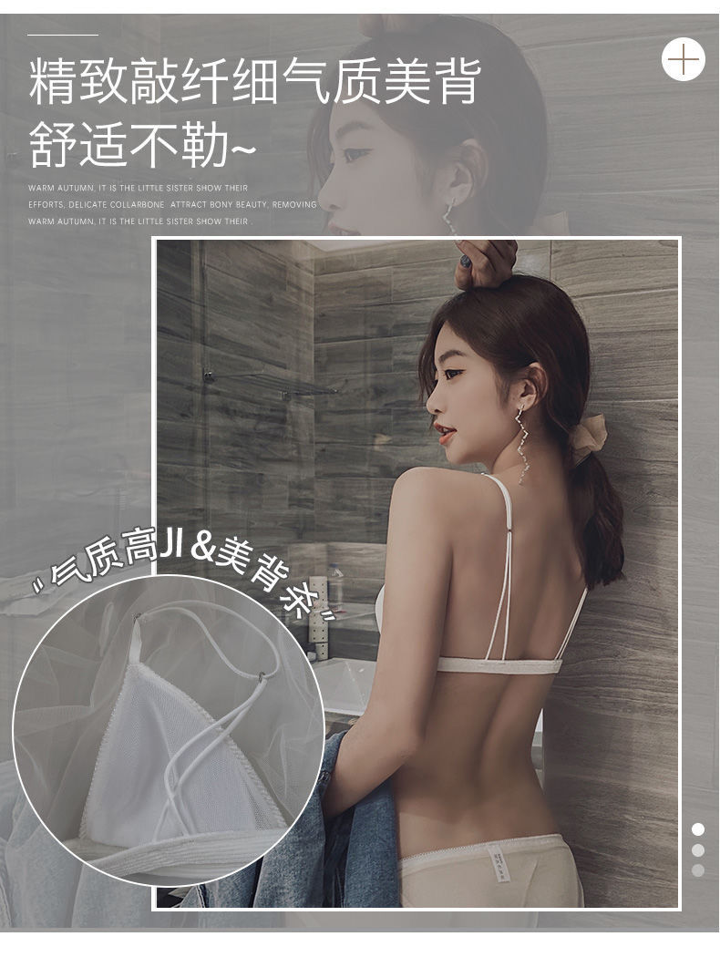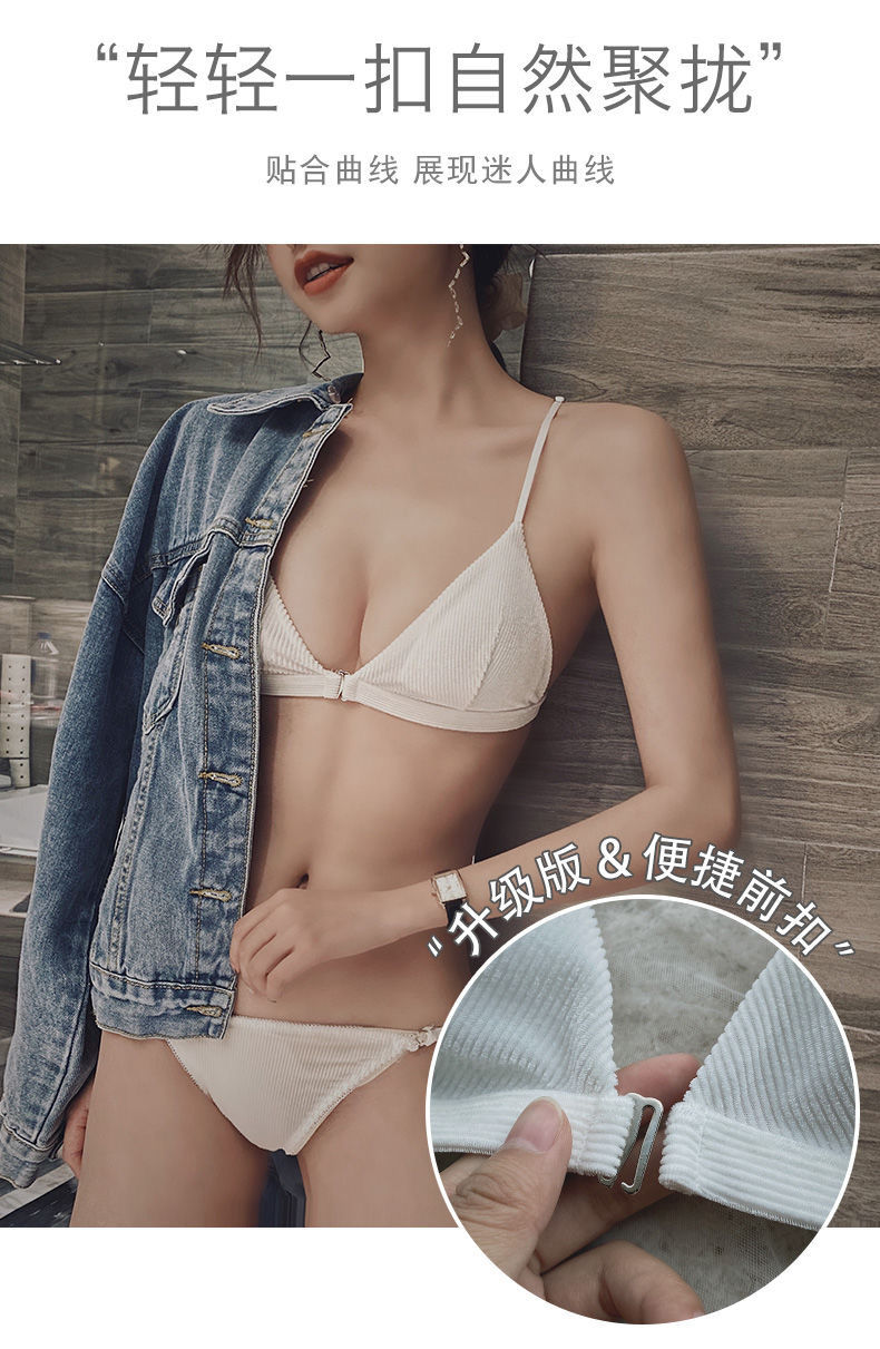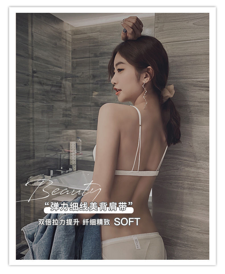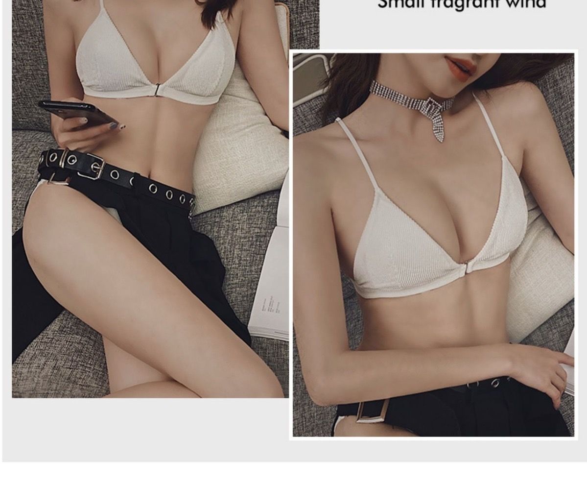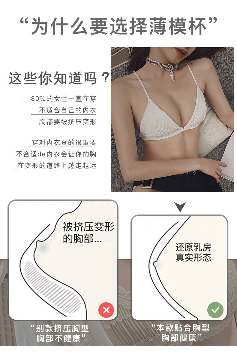 轻薄舒适前扣式三角杯内衣女聚拢无钢圈性感美背文胸罩超薄白色夏