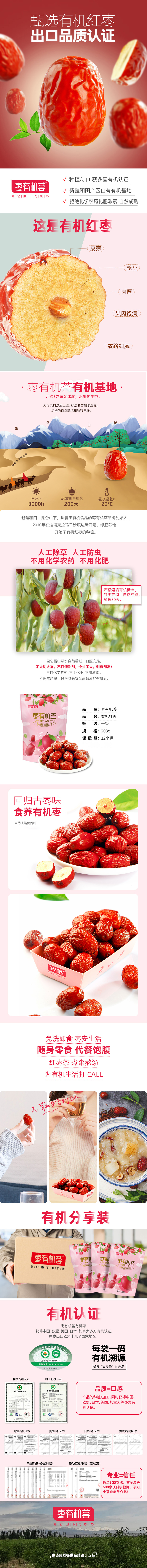 有机红枣免洗新疆和田一级有机枣 包装便携原味即食208g/袋【京东快递送货上门】