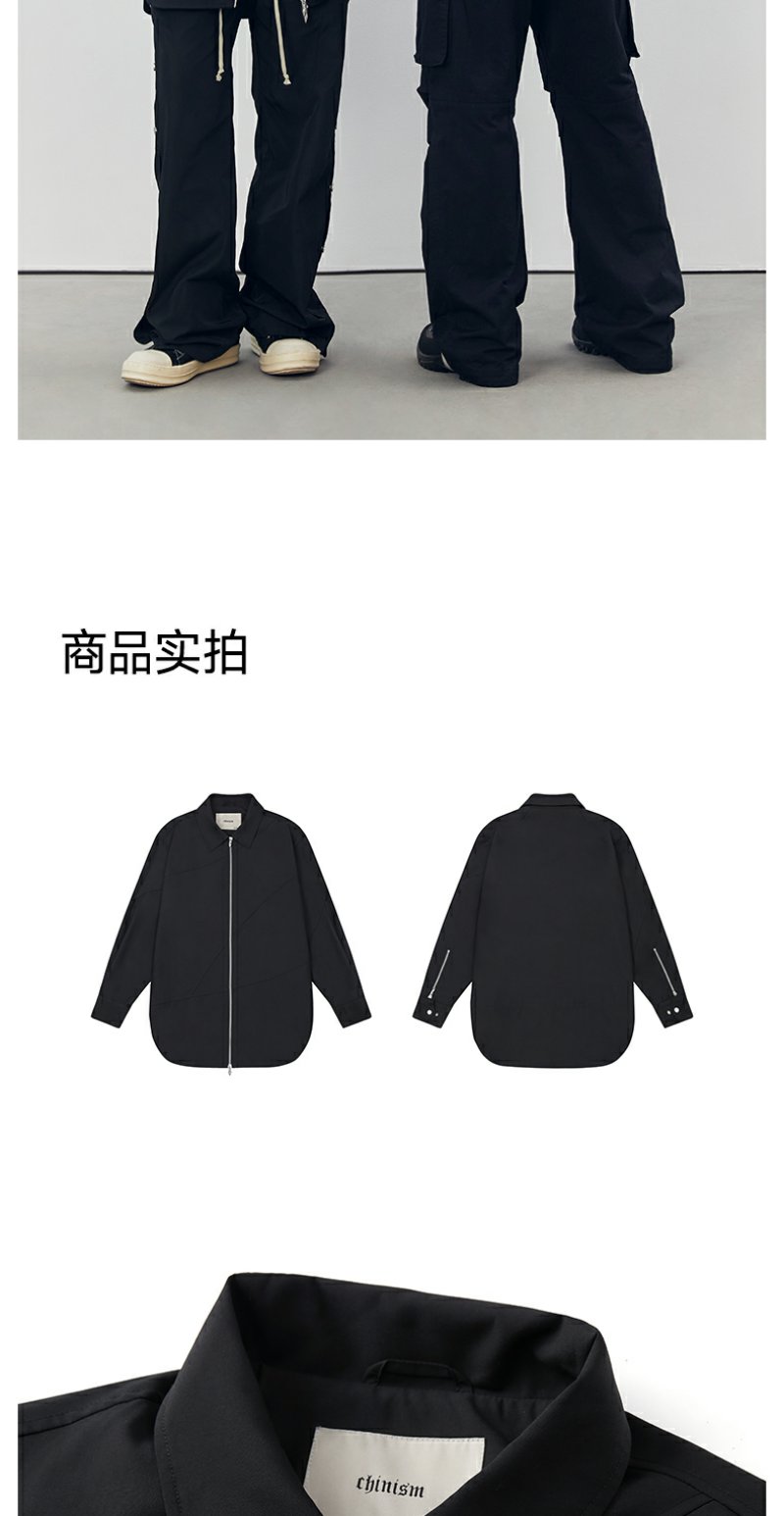 【黑水系列】CHINISM潮流男装 黑色抗皱拉链衬衫男休闲衬衣外套