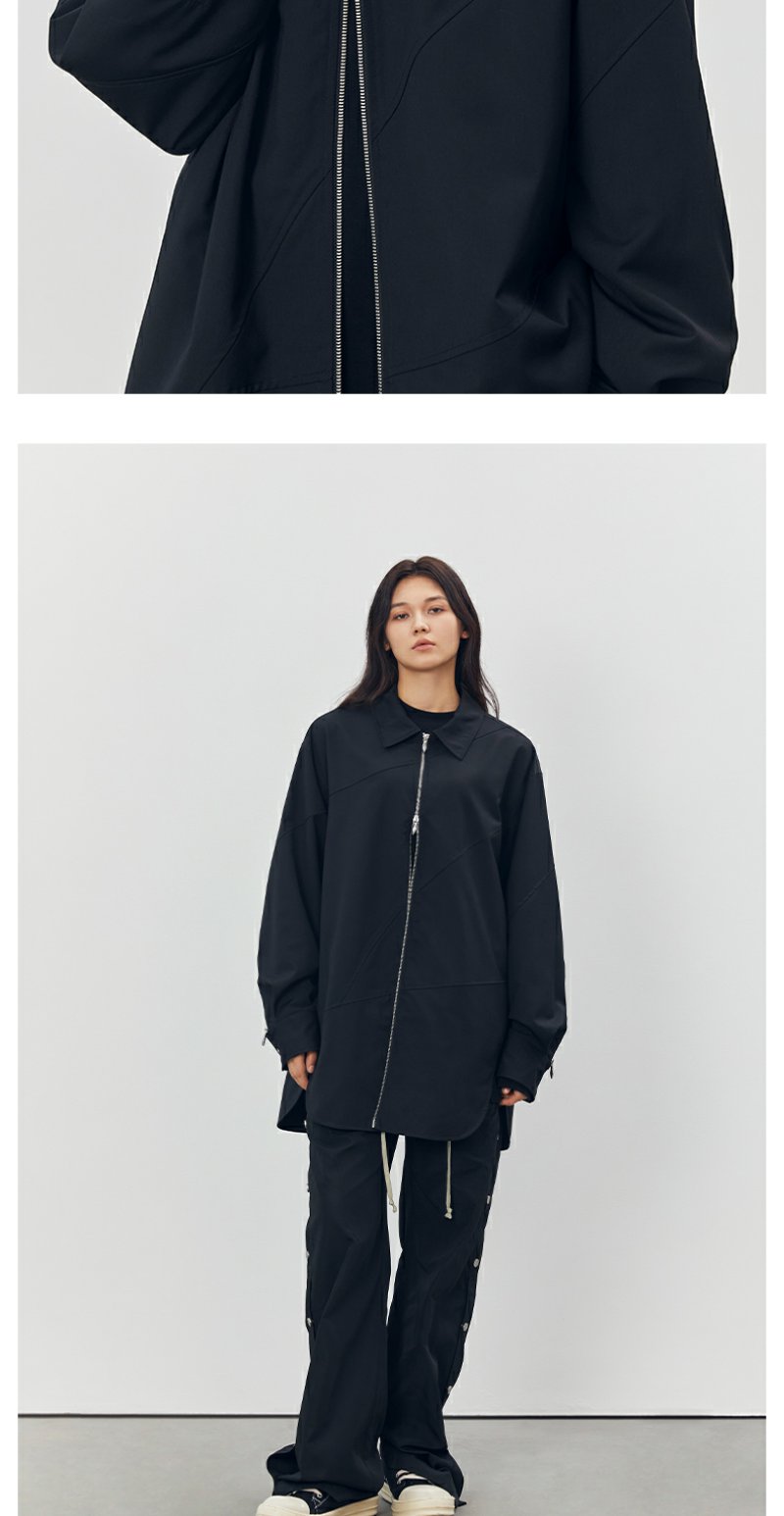 【黑水系列】CHINISM潮流男装 黑色抗皱拉链衬衫男休闲衬衣外套 商品图2