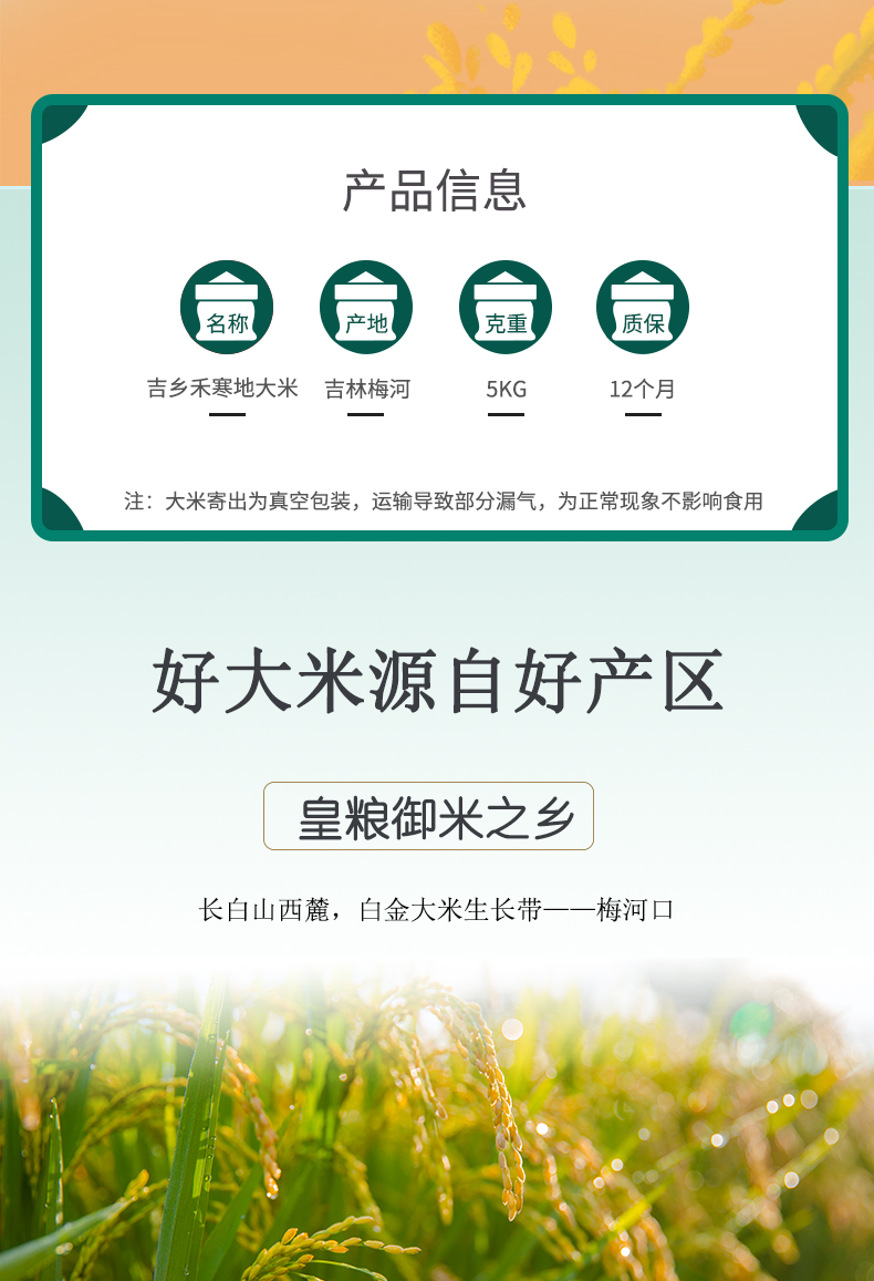 【自营】吉乡禾寒地大米珍珠米5kg 大米10斤新米 JUNONG-039
