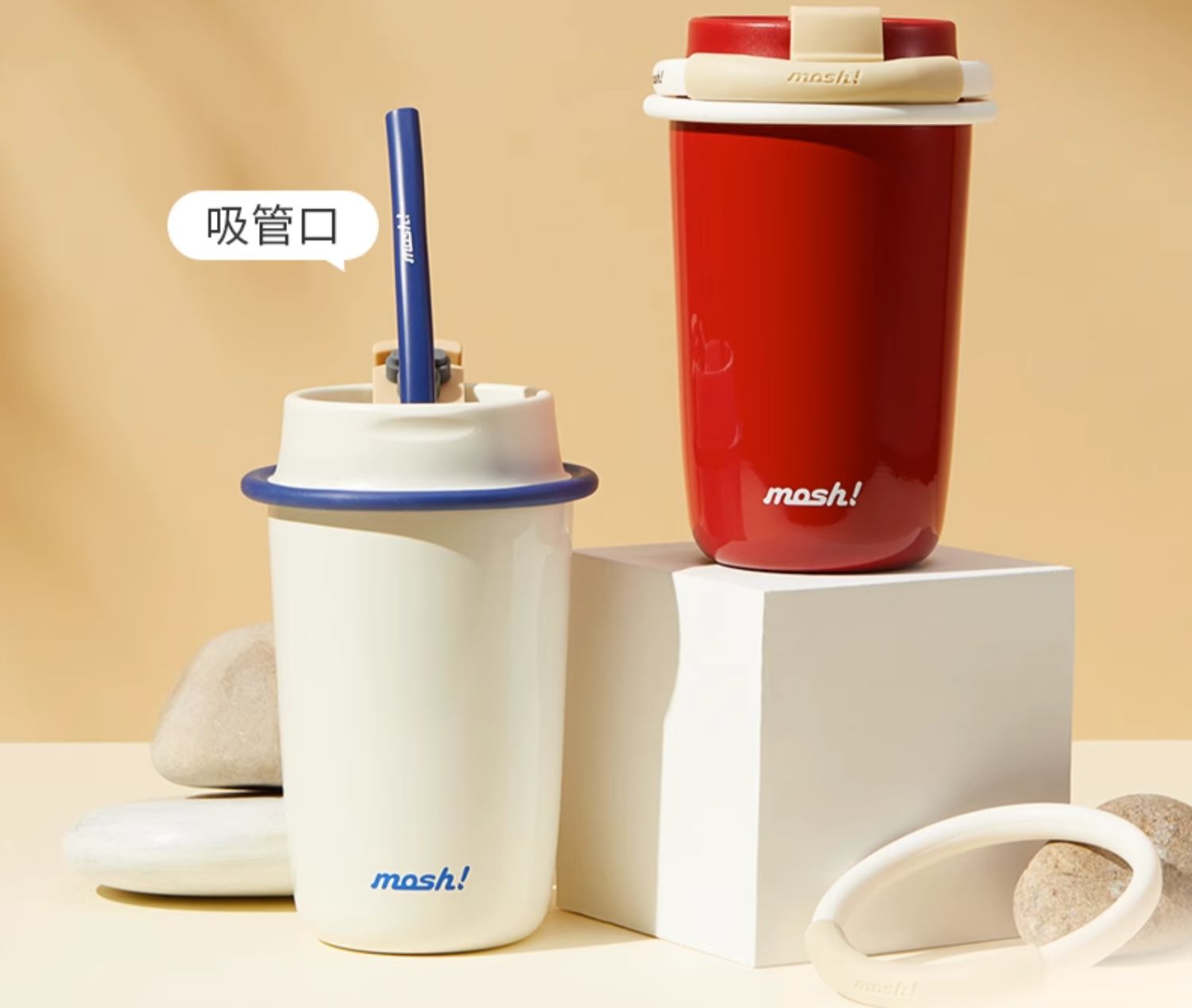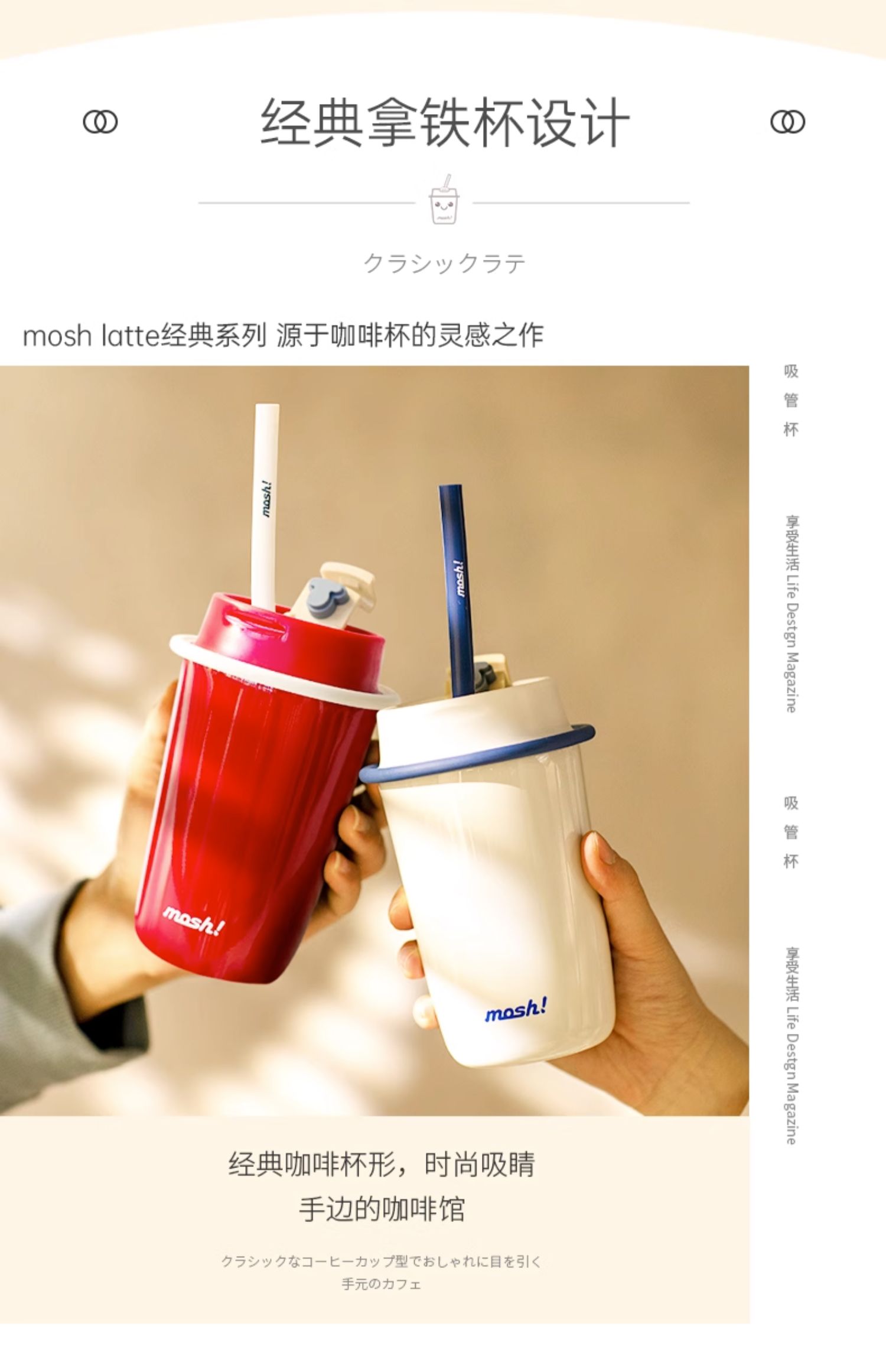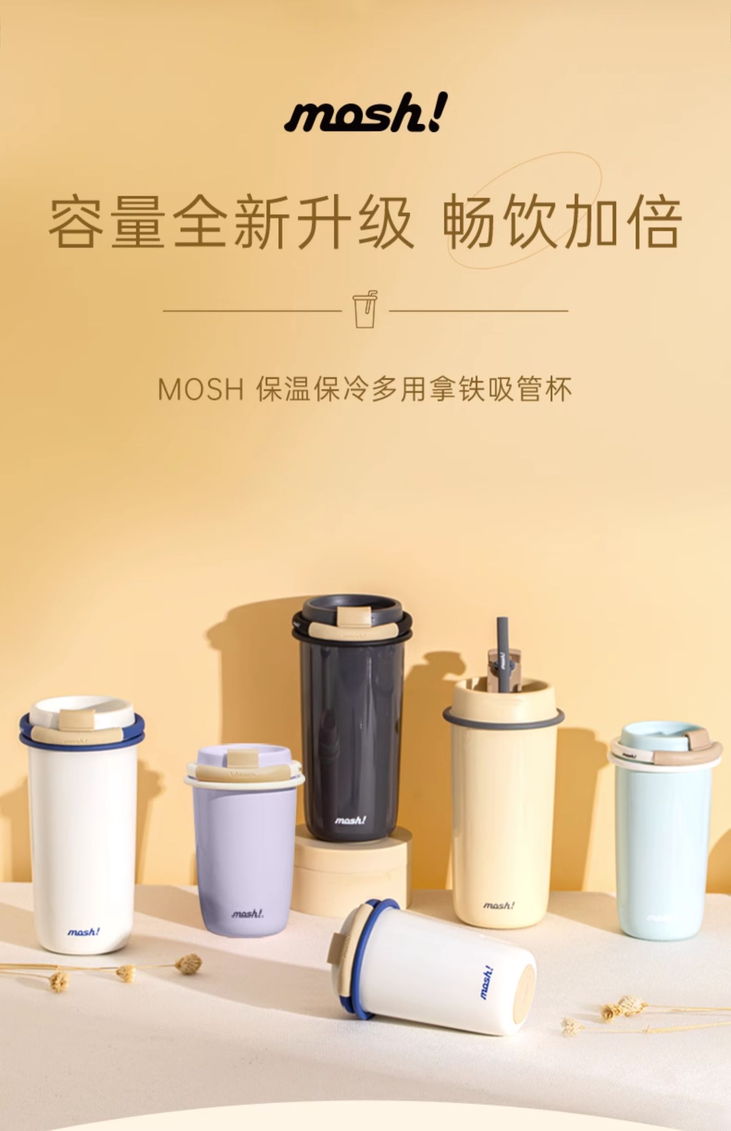 mosh吸管杯饮料杯拿铁咖啡杯保温杯高颜值水杯大容量保冷水杯