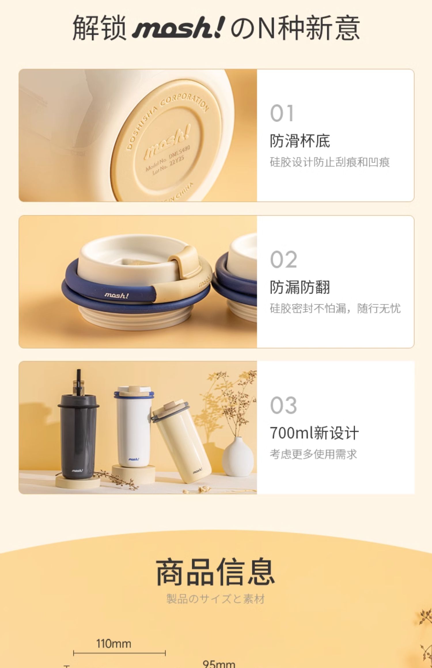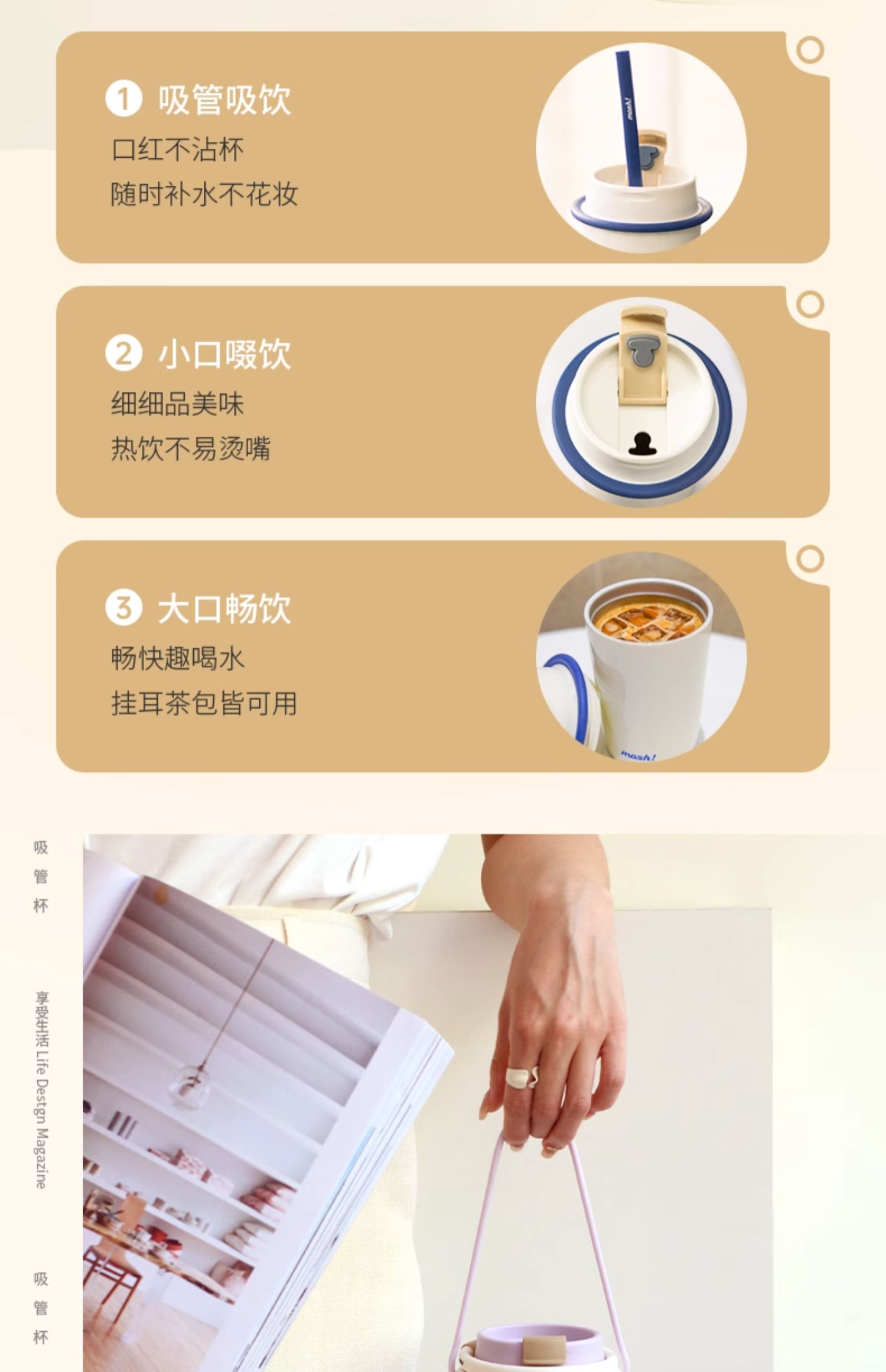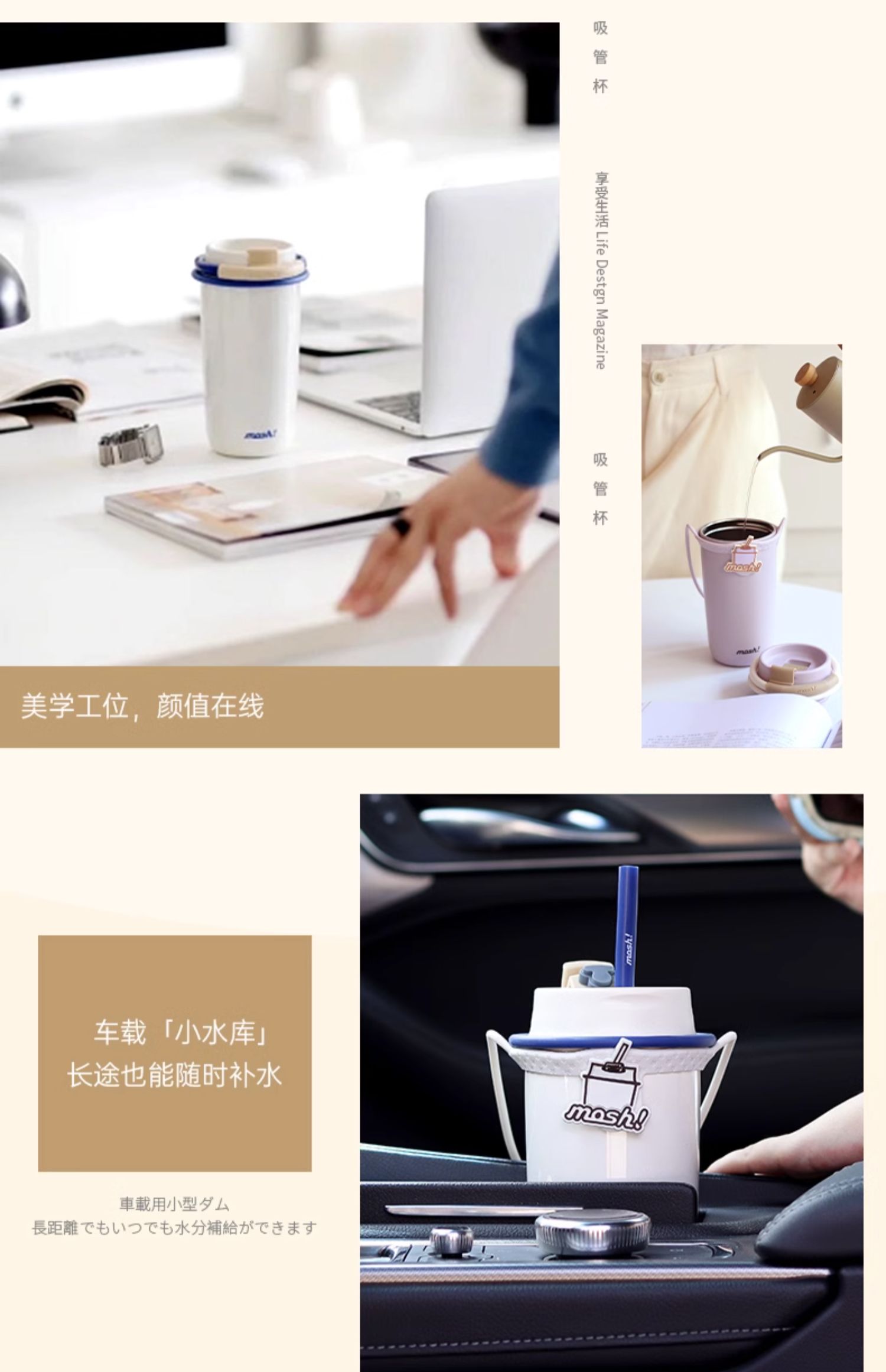 mosh吸管杯饮料杯拿铁咖啡杯保温杯高颜值水杯大容量保冷水杯