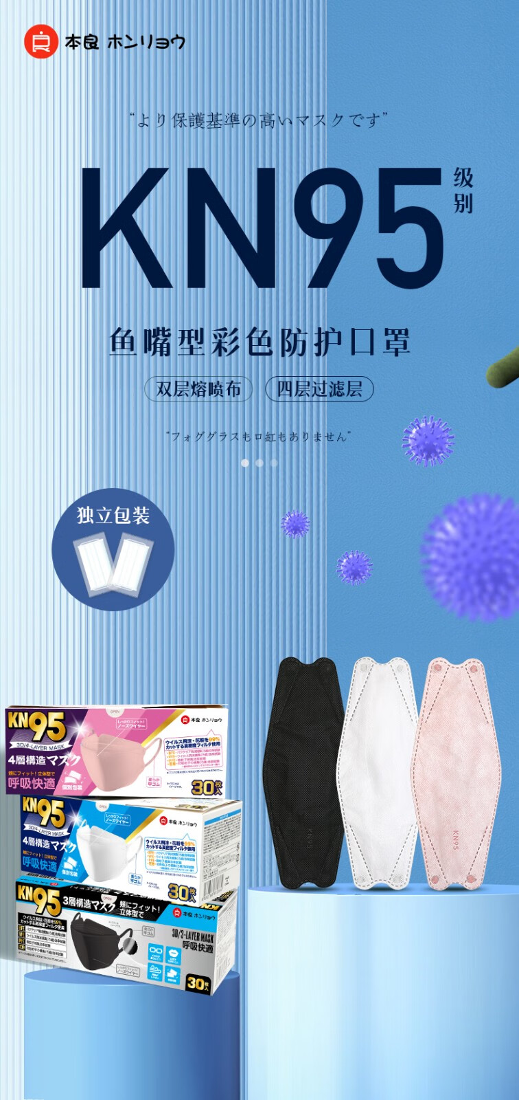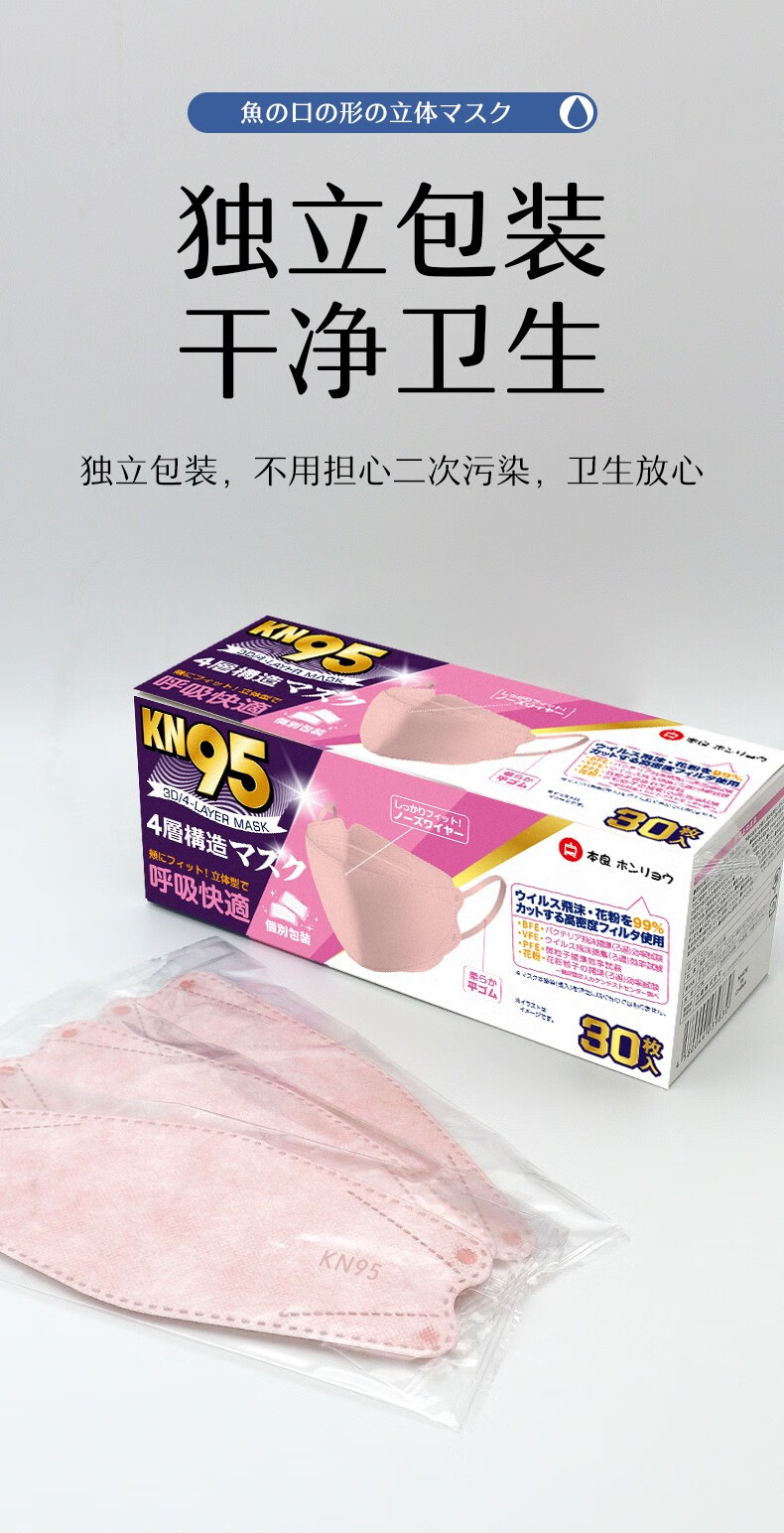 本良 KN95口罩 一次性鱼嘴型四层防护口罩30枚/盒 白色