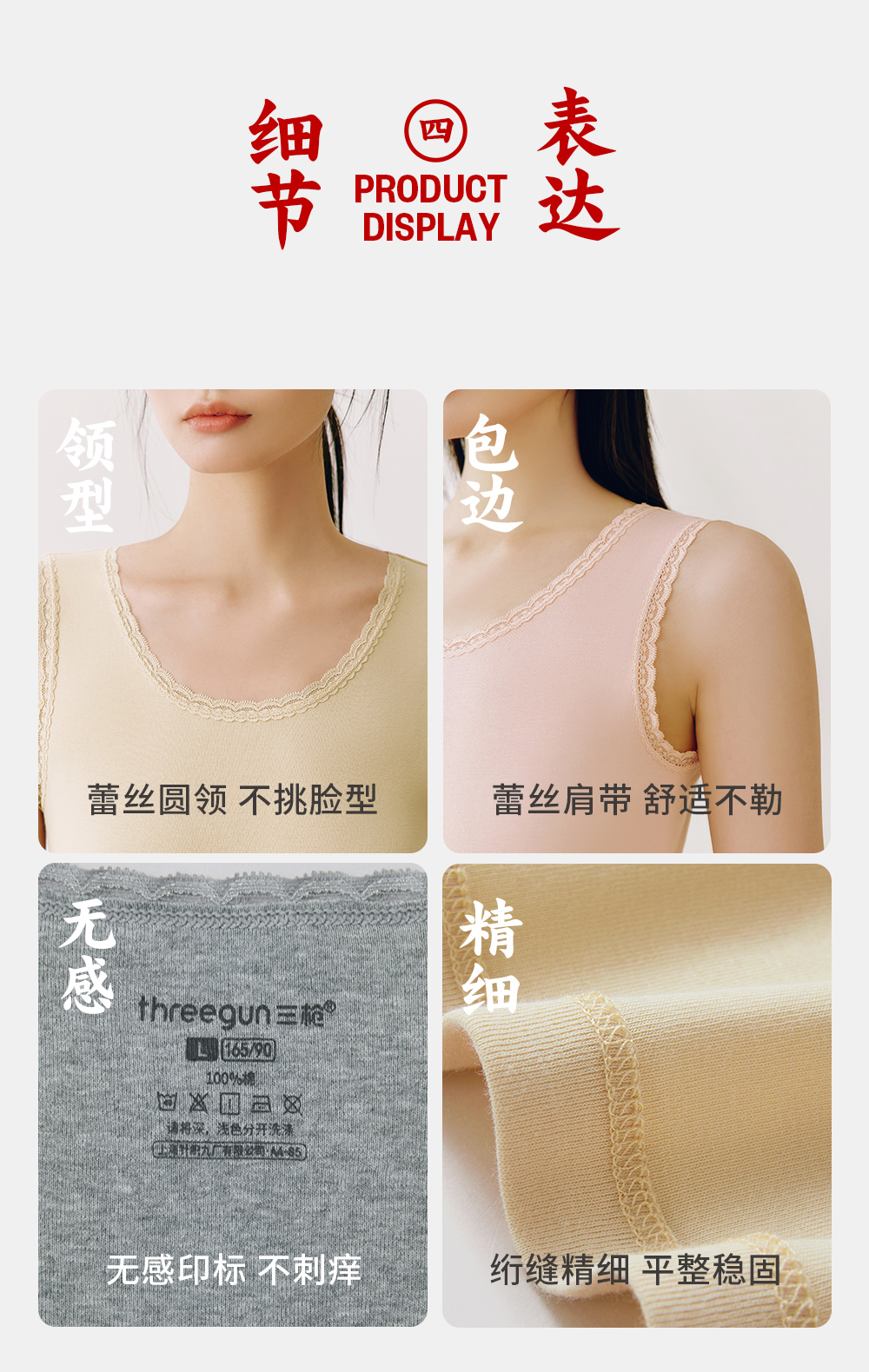 Threegun三枪 舒肤罗纹棉女士背心-T30042A01