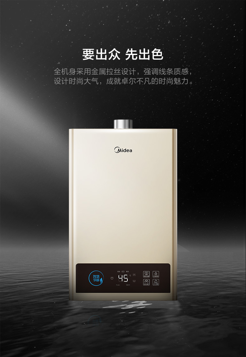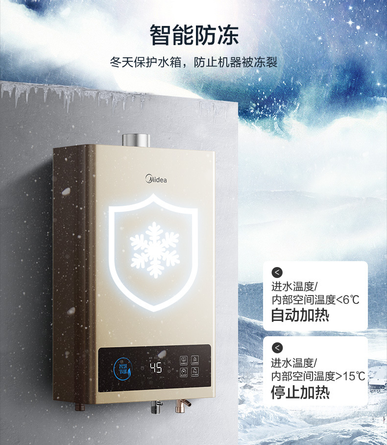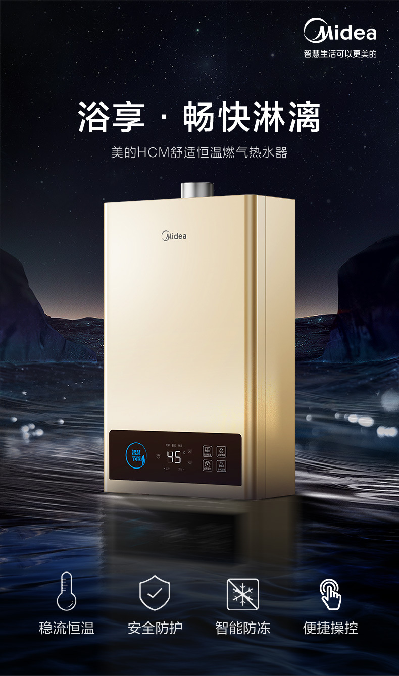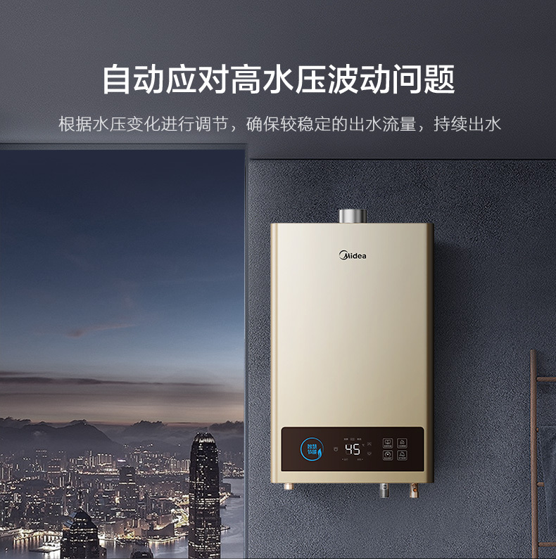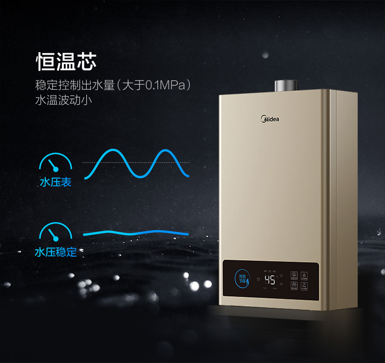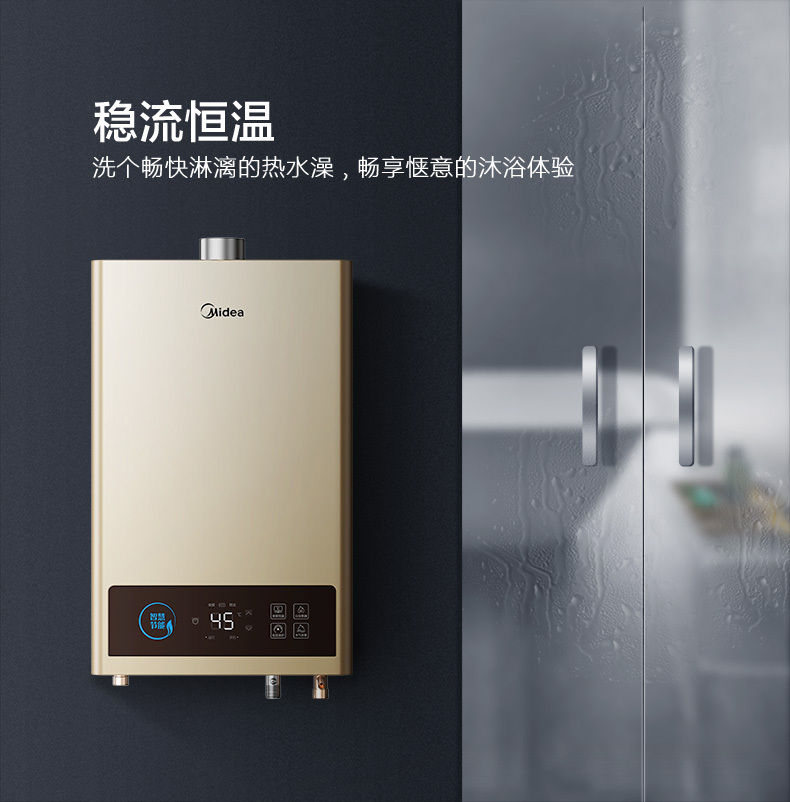 美的 JSQ22-12HCM 恒温式燃气热水器 摩卡金 12T 电辅加机械防冻 NW