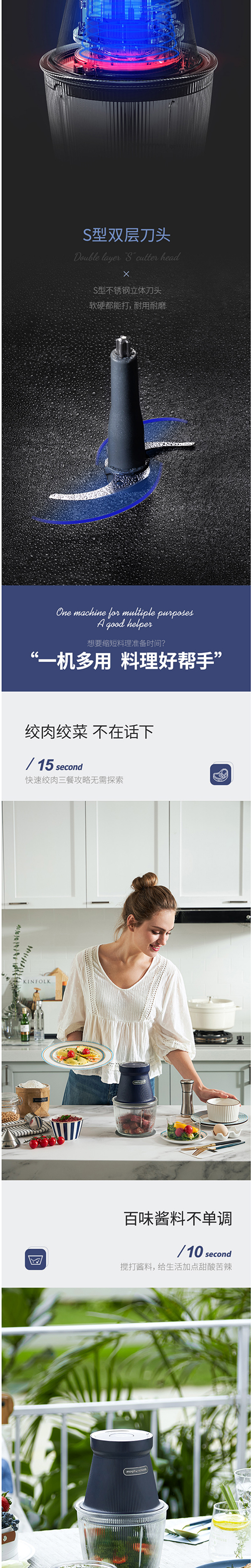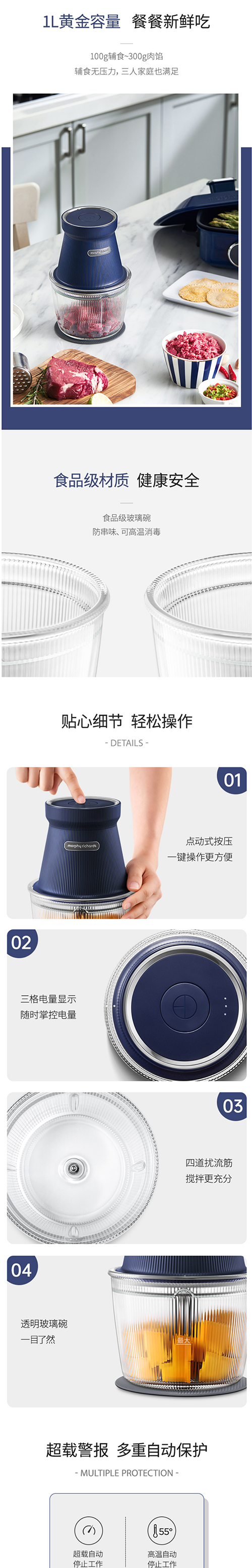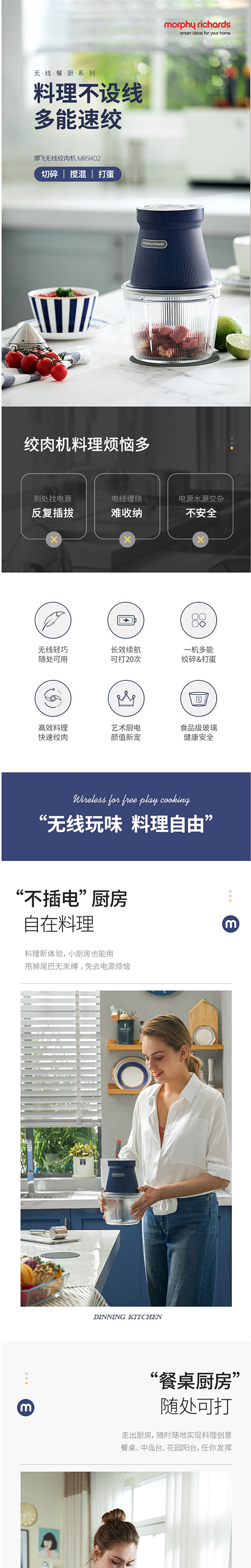 摩飞电器(Morphyrichards)无线绞肉机家用电动多功能绞馅机料理辅食机搅拌机打馅MR9402