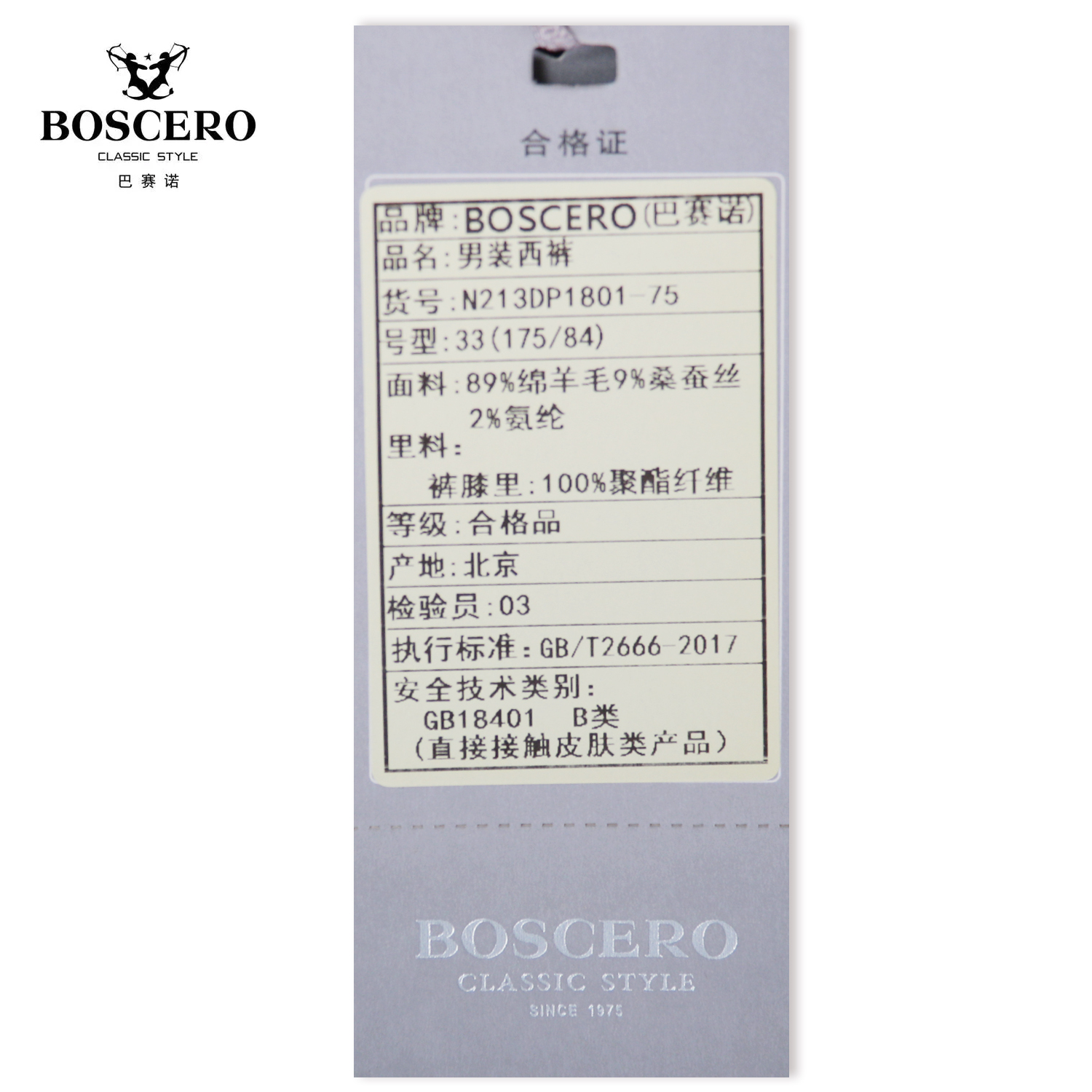 巴赛诺套西裤子N213DP1801-75