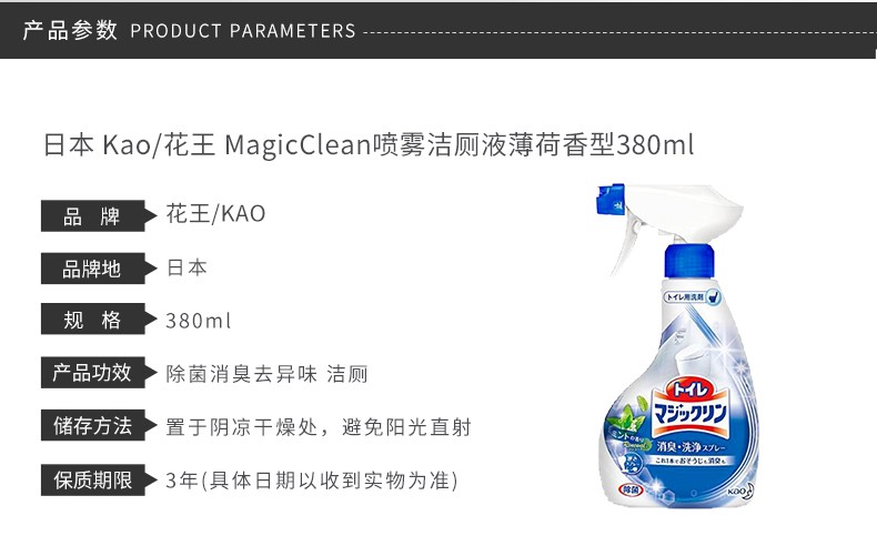 KAO花王 MAGIC CLEAN喷雾洁厕液 薄荷香型 380ML