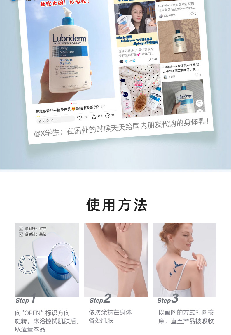 美国强生lubriderm润肤身体乳473ml