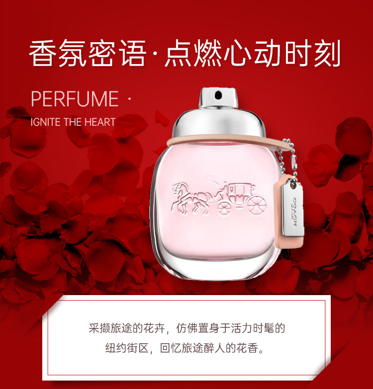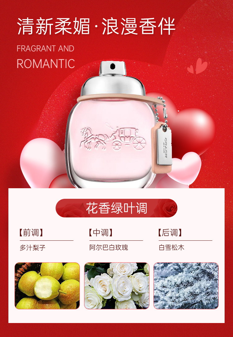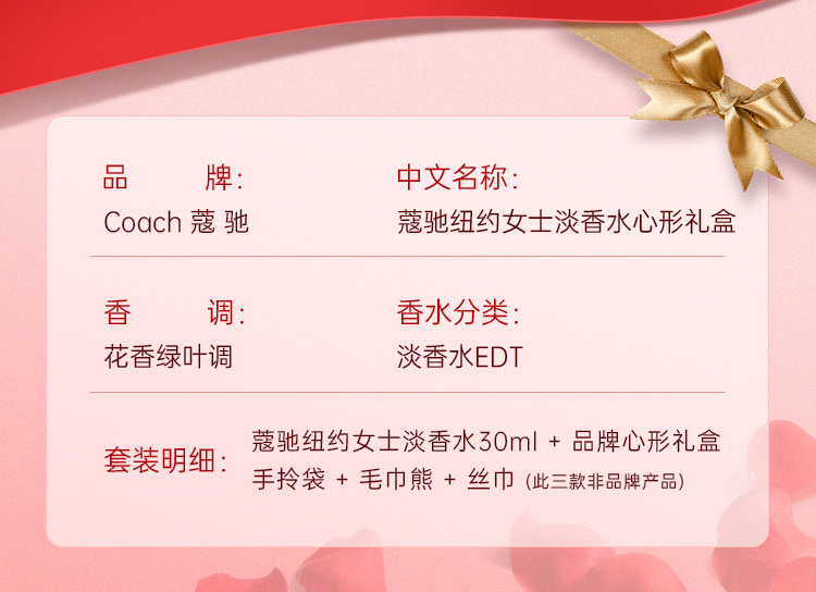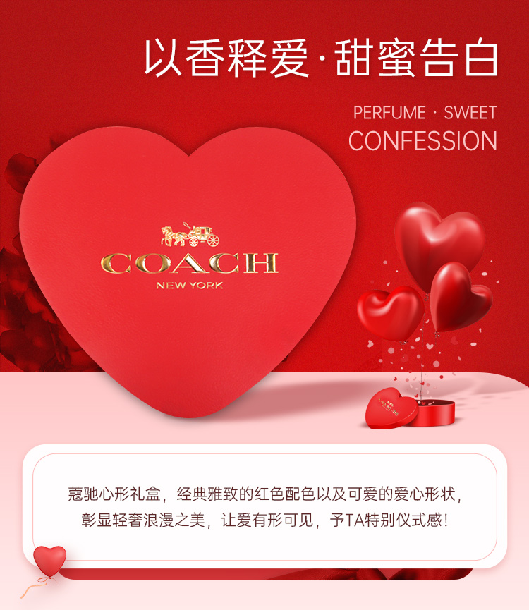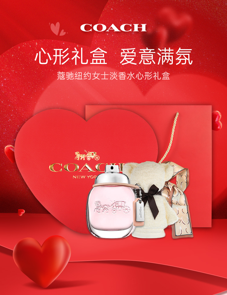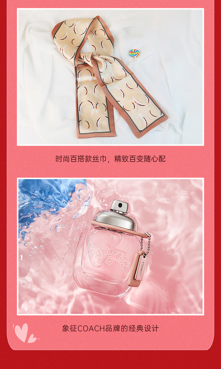 【淡香!一点小心机】COACH/蔻驰纽约女士淡香水心形礼盒 纽约女士淡香水30ml+心形礼盒 手拎袋+毛巾熊+丝巾(赠品非品牌产品) 甜美花香味 纯净的玫瑰少女