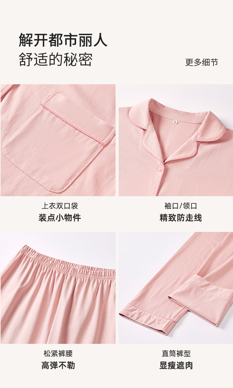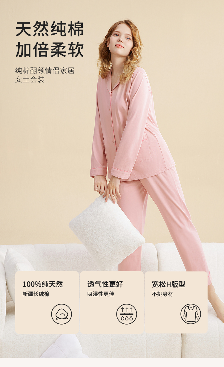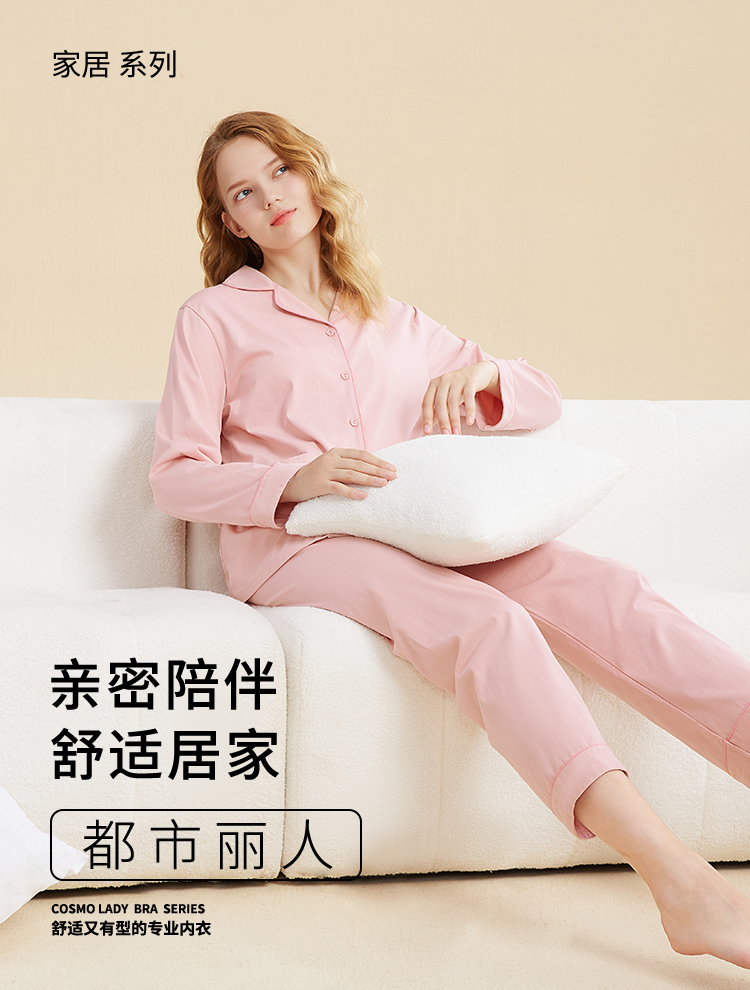 都市丽人女士棉质套装长袖长裤无尘棉家居服2H3019