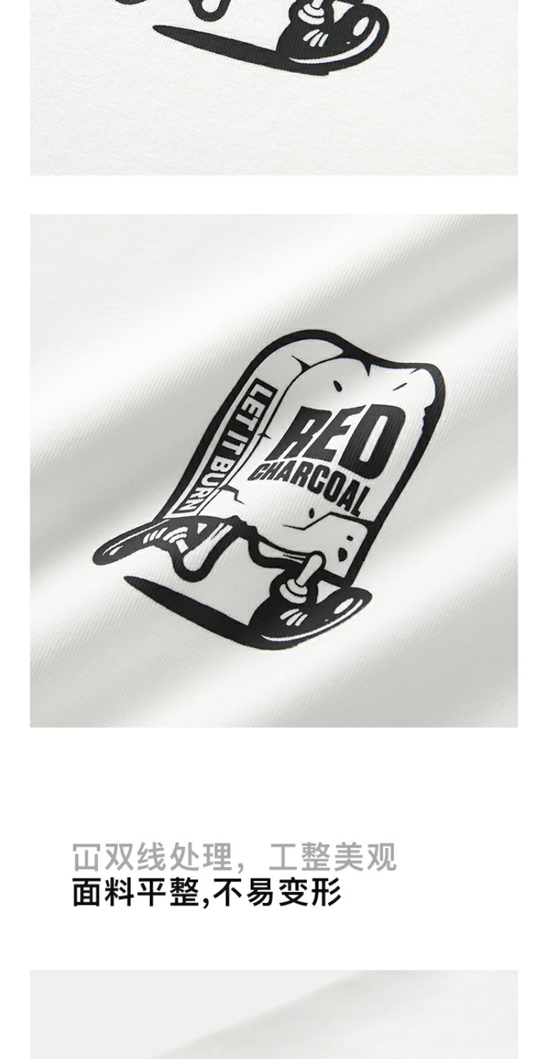 REDCHARCOAL 红炭凉感速干趣味印花短袖T恤男夏宽松防晒情侣半袖