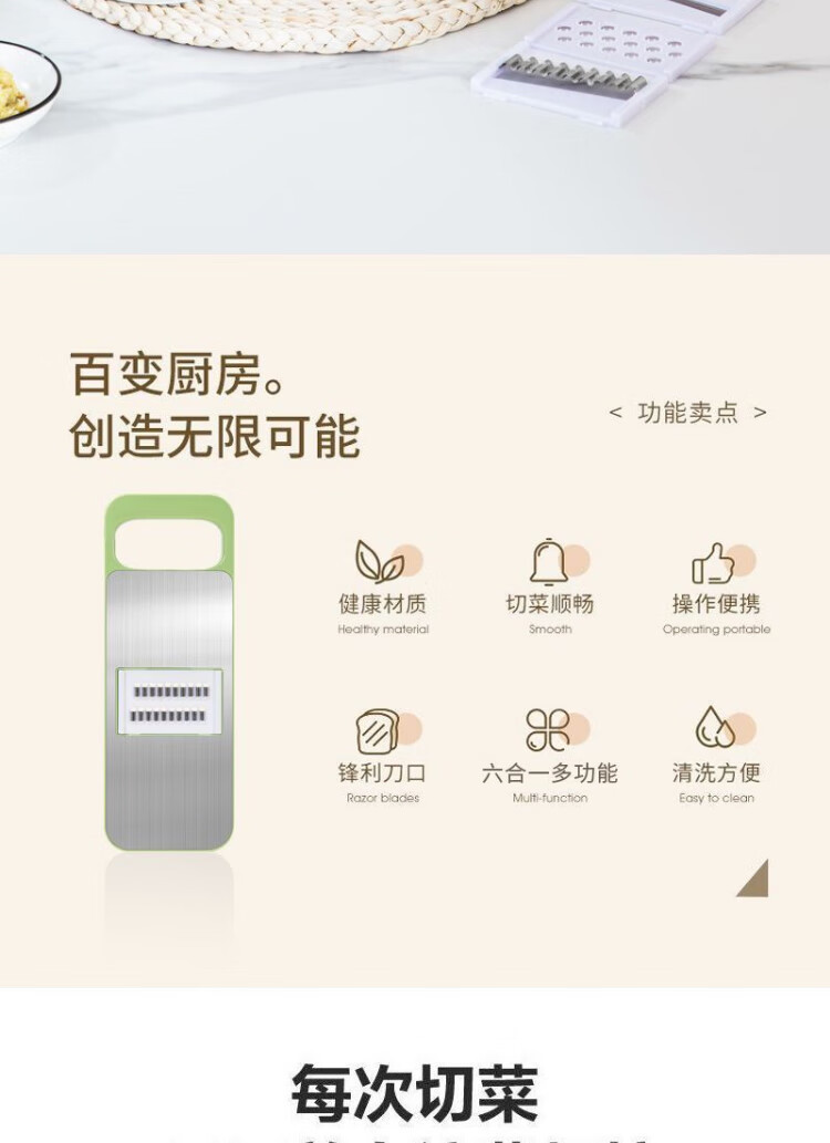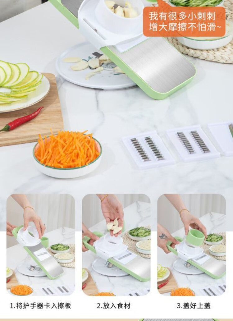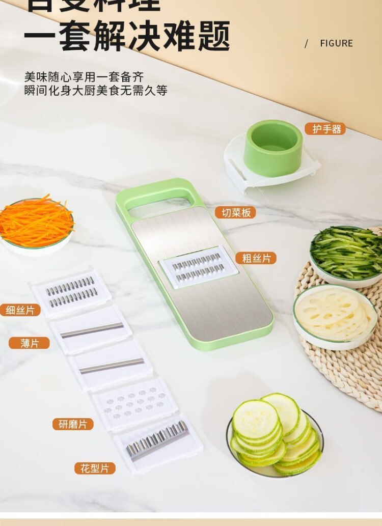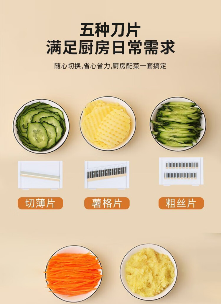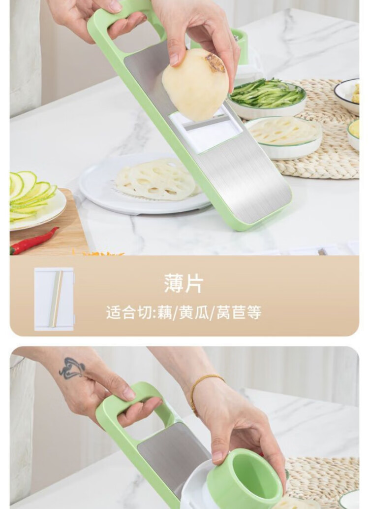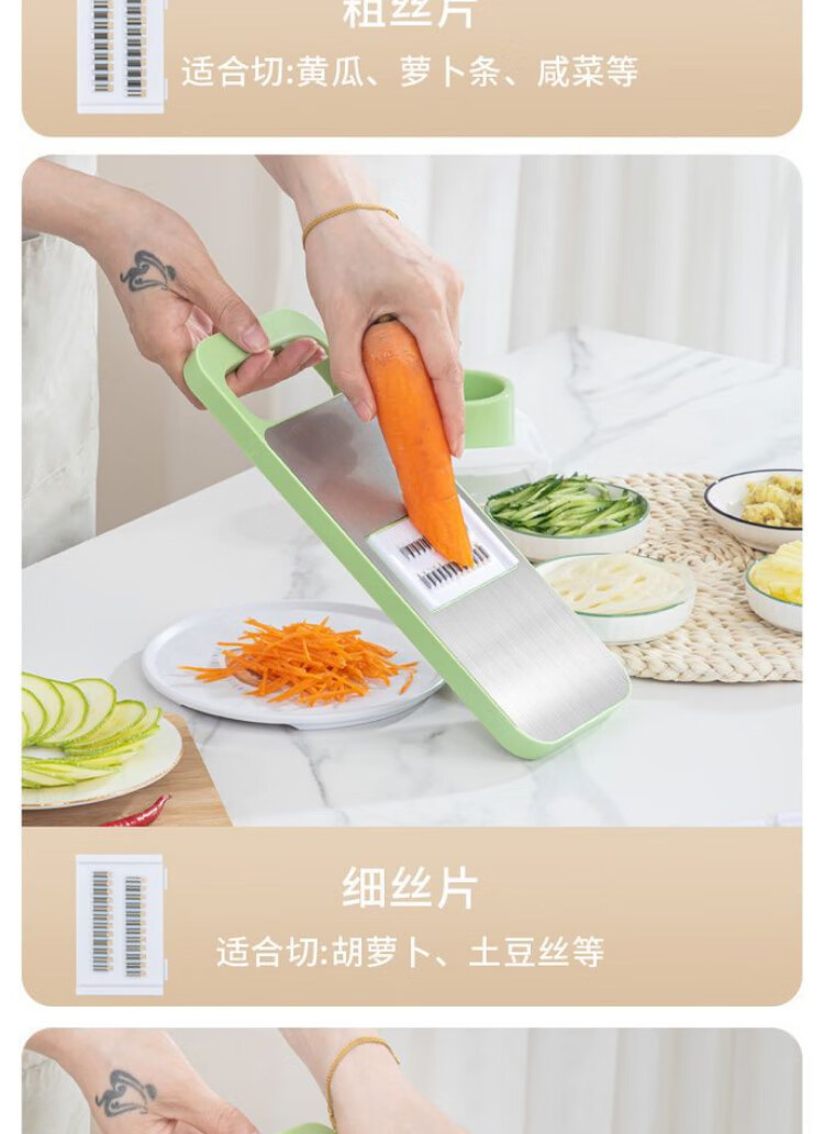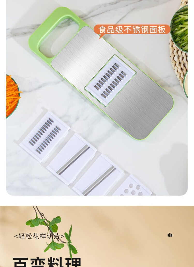 【百变料理!一套解决难题】刨丝器不锈钢切丝器划丝器多功能厨房切菜神器擦丝器厨房土豆丝擦丝板,五种刀片,满足厨房日常需求