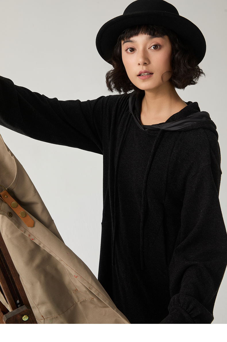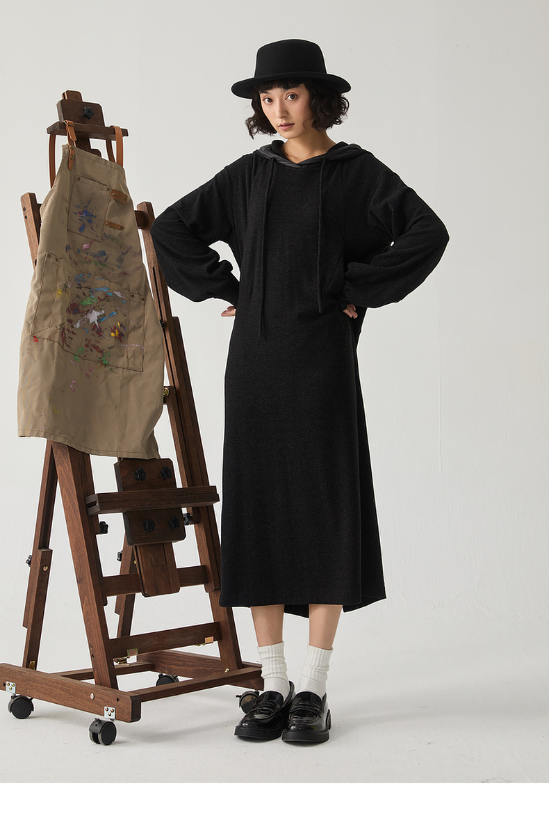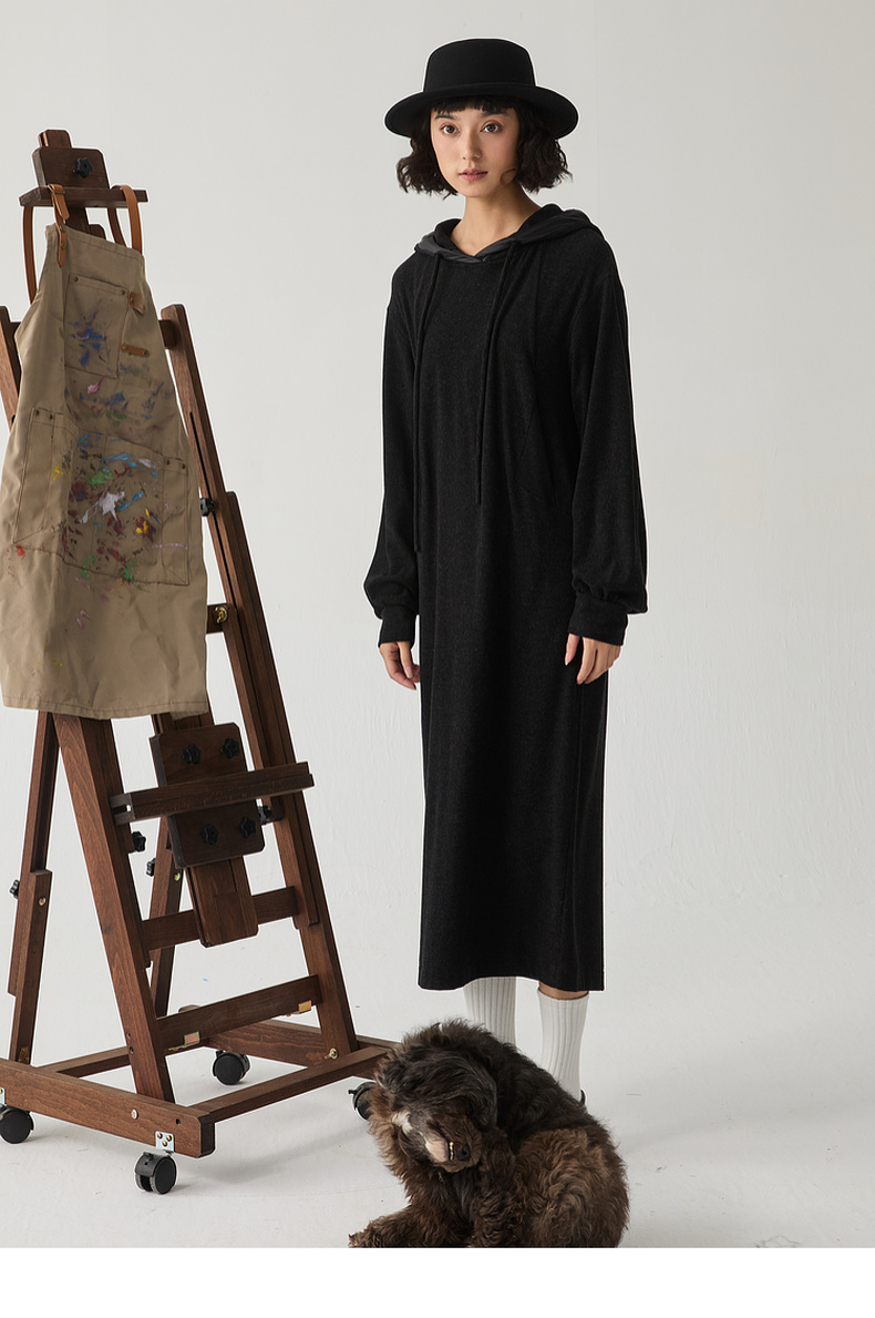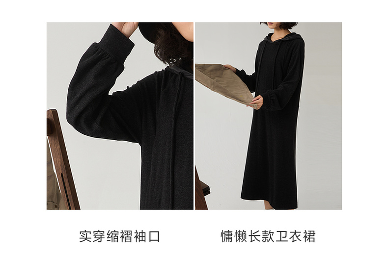 谜底连帽卫衣裙长袖女2024冬新品极简风休闲直筒连衣裙244ML1639
