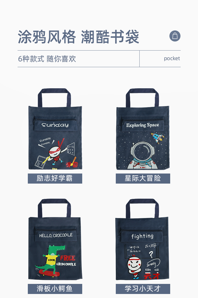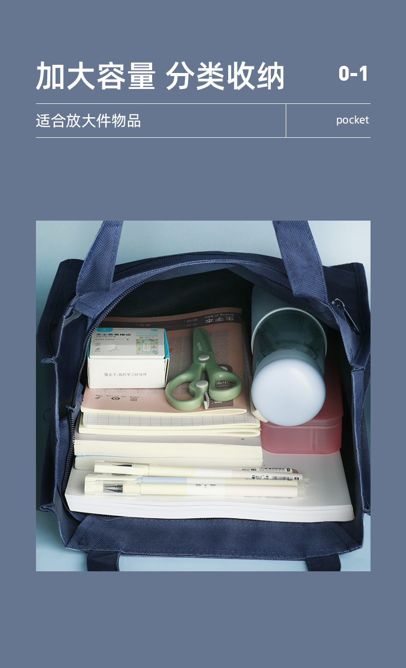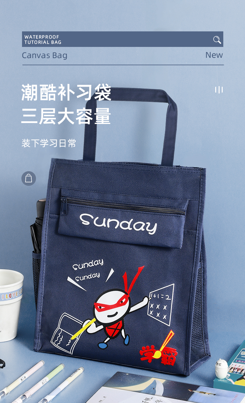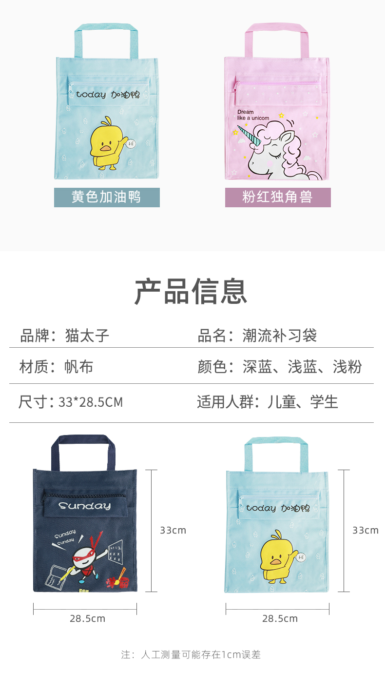 猫太子学生手提袋拎书袋文件袋帆布美术补习班补课三层大容量男女生