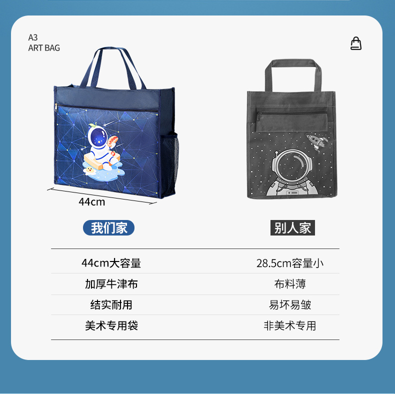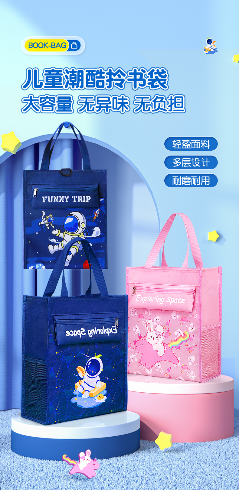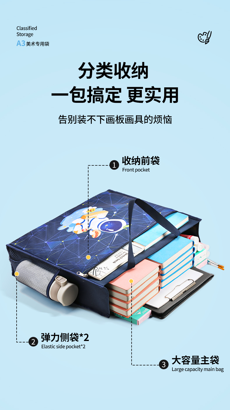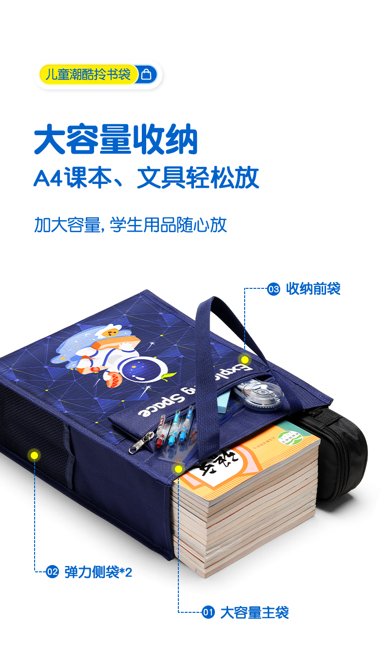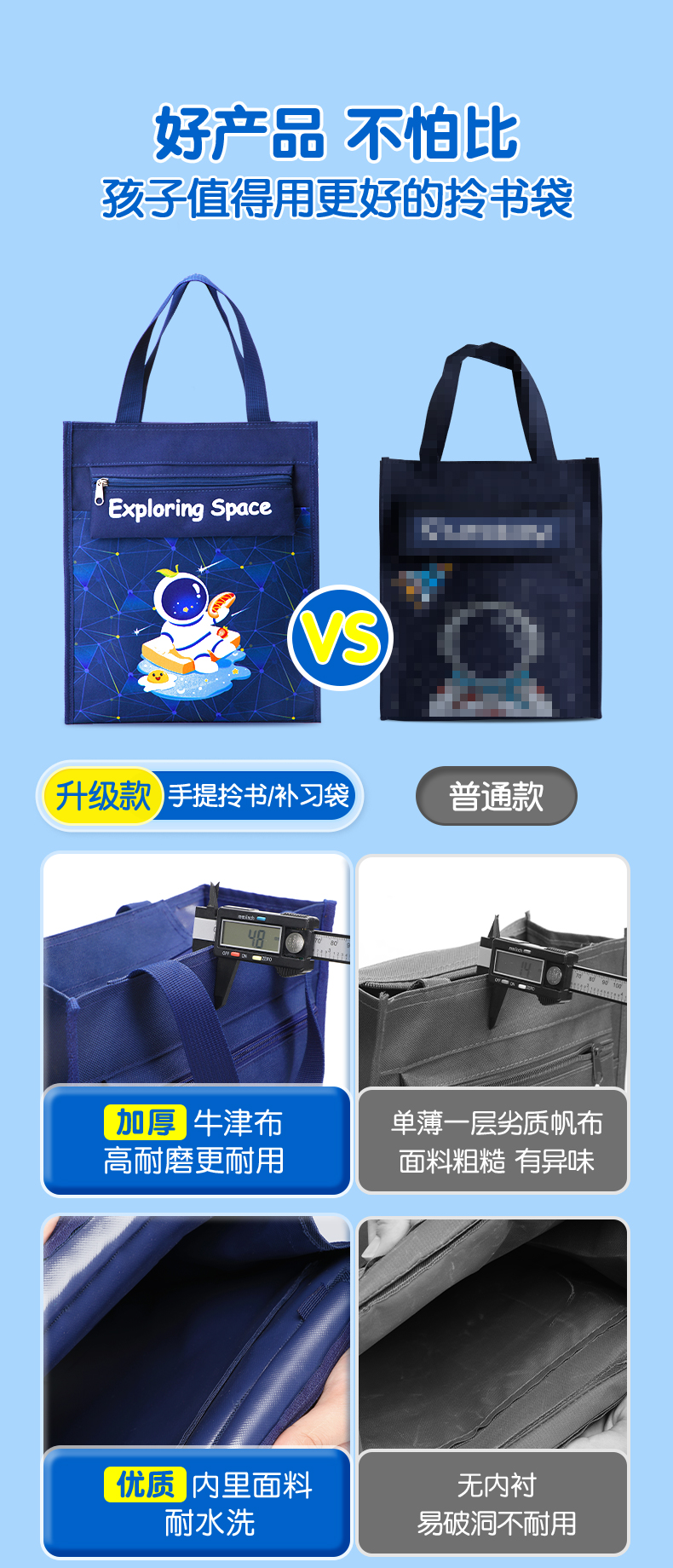 猫太子学生手提袋拎书袋文件袋帆布美术补习班补课三层大容量男女生