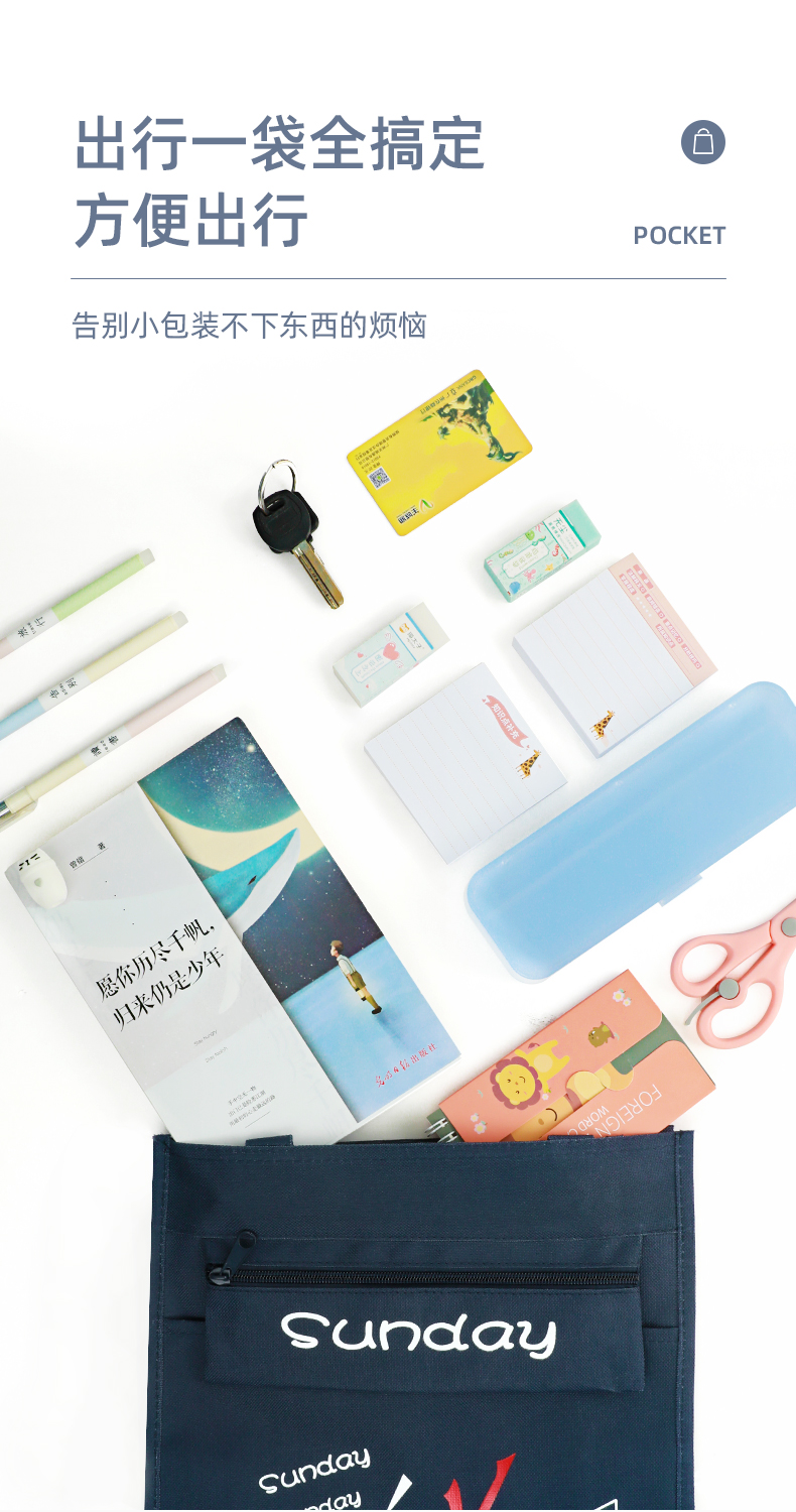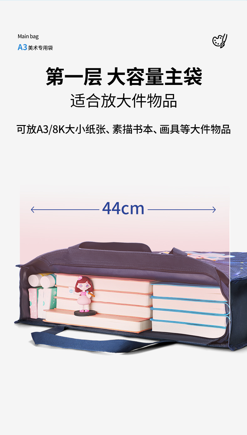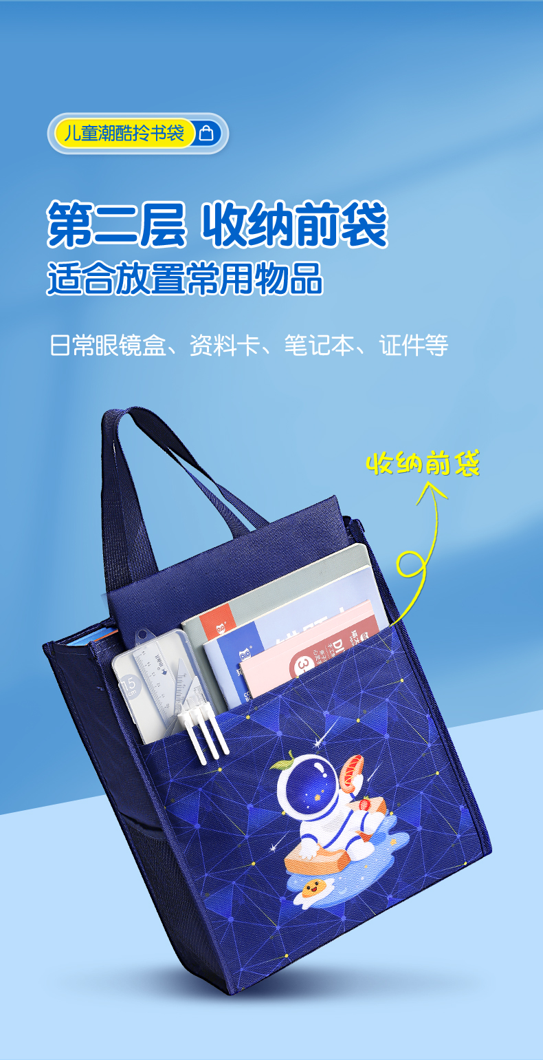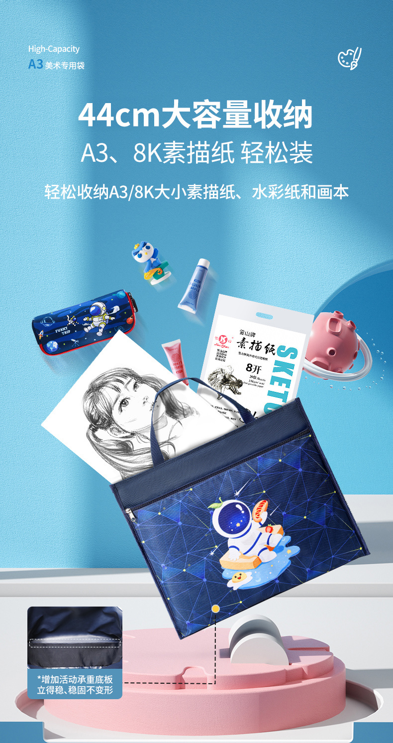 猫太子学生手提袋拎书袋文件袋帆布美术补习班补课三层大容量男女生
