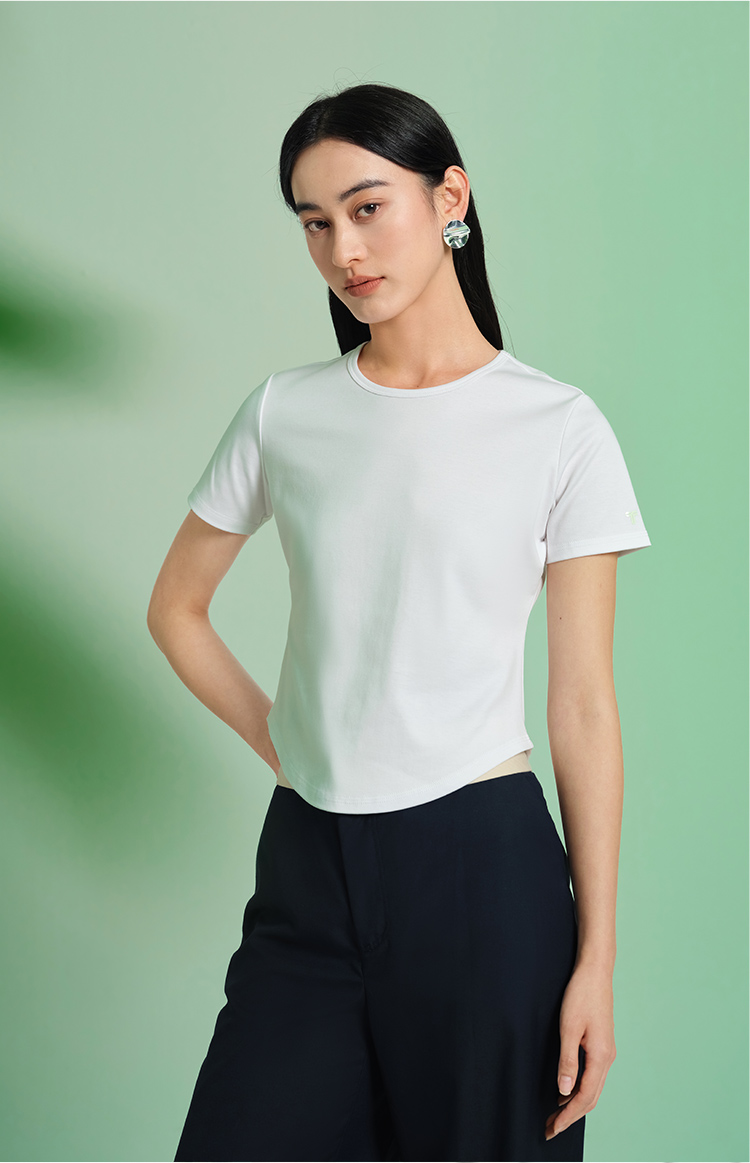 拇指白小T女士经典水光魔术PLUS紧身短款圆领短袖T无限系列