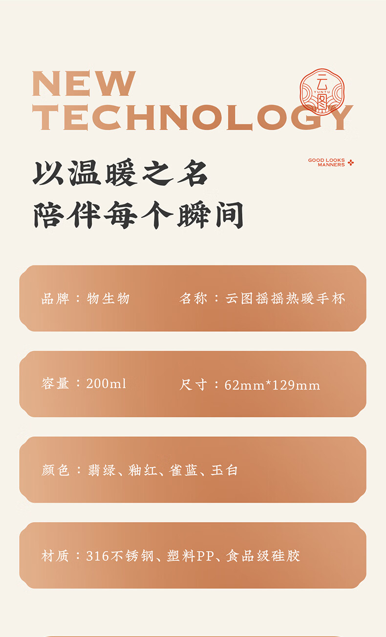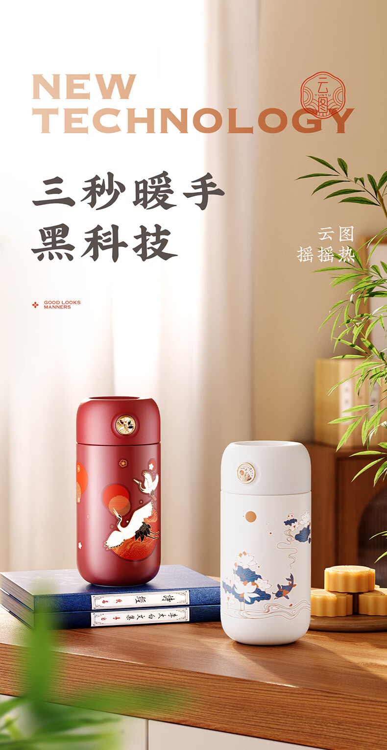 物生物 中国风 摇一摇暖手云图保温杯 200ML