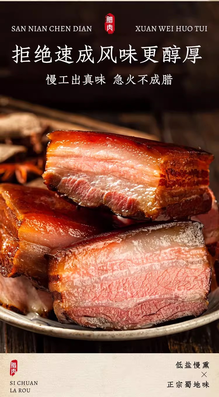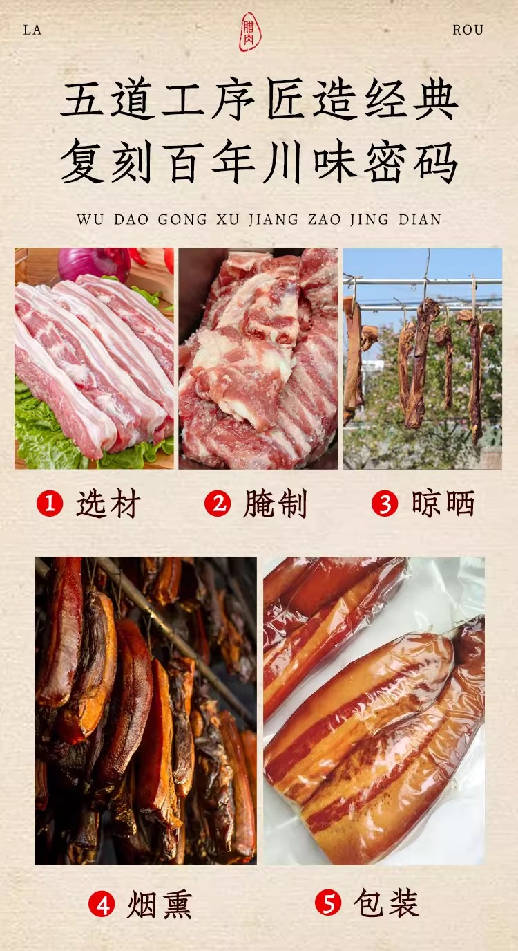 正宗四川特产农家烟熏腊五花/腊排骨/腊肠 慢熏低盐 农脂润肉嫩 不柴不腻