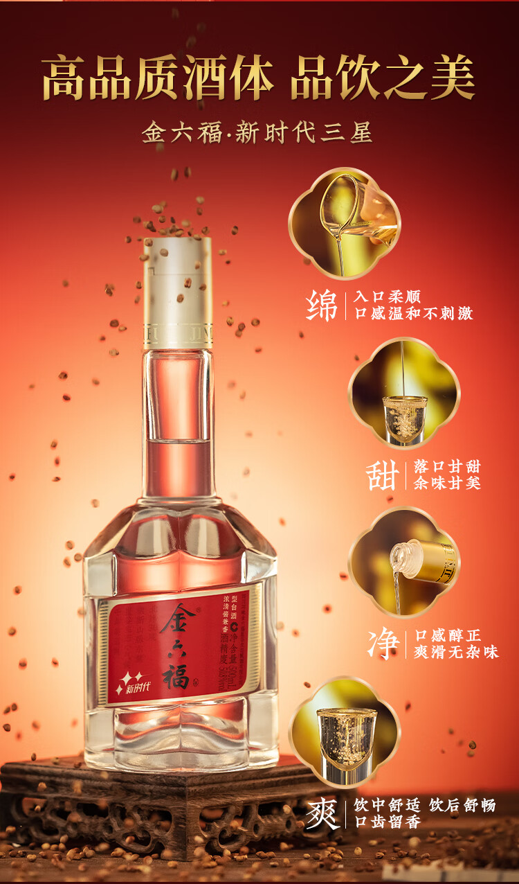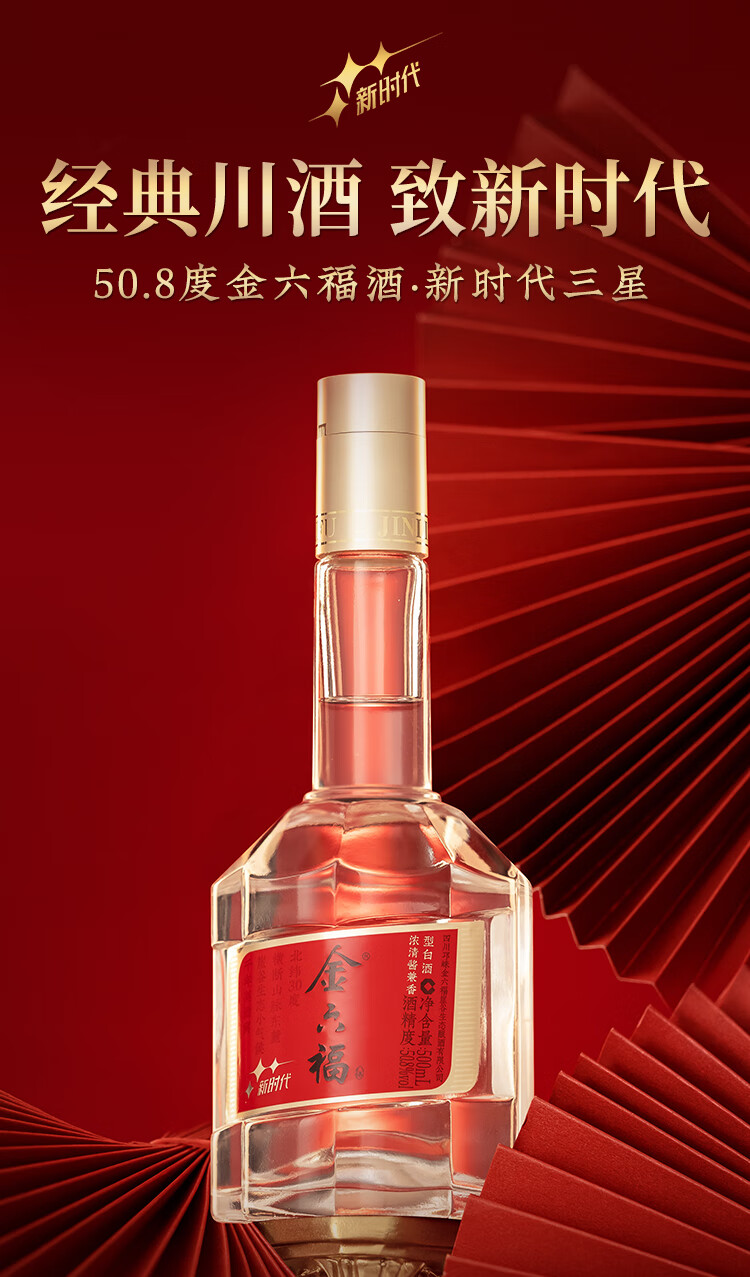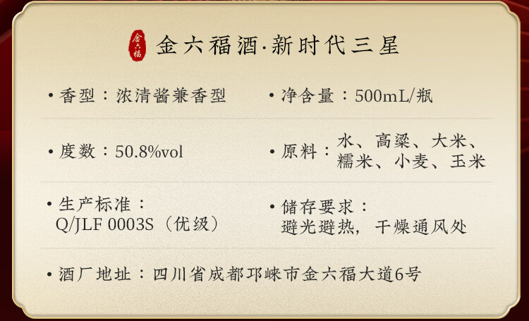 【仅供集采】金六福 新时代三星 浓清酱兼香白酒纯粮酿造50.8度 500mL *6瓶 (整箱装)
