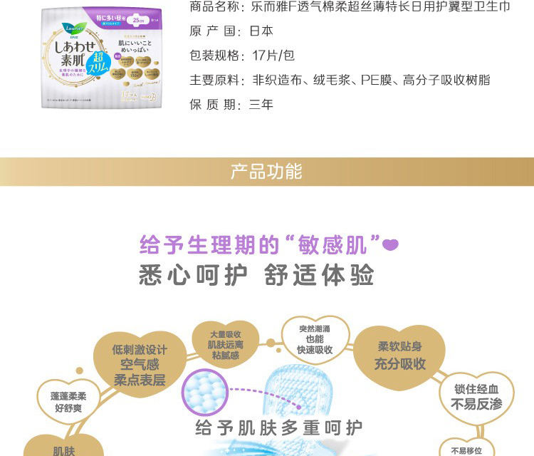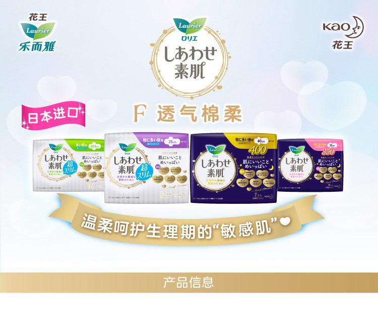 【3包装】KAO花王 乐而雅F舒适系列护翼日用卫生巾25cm*17片/包