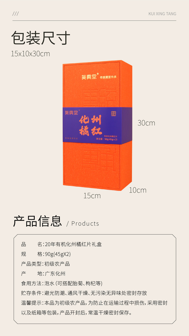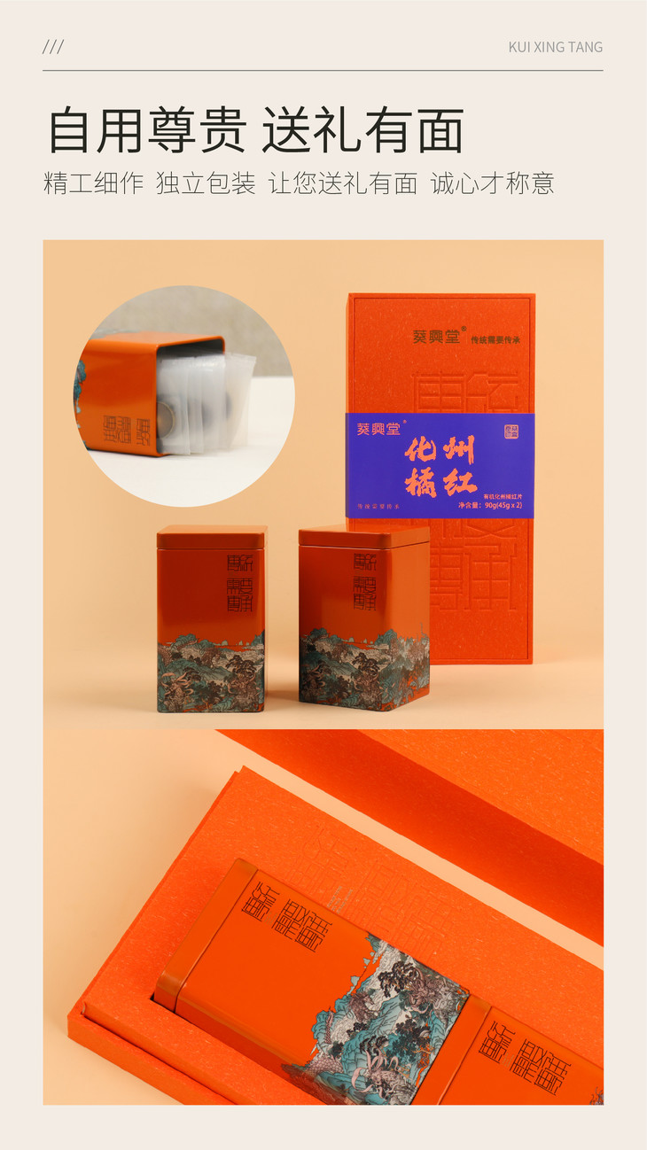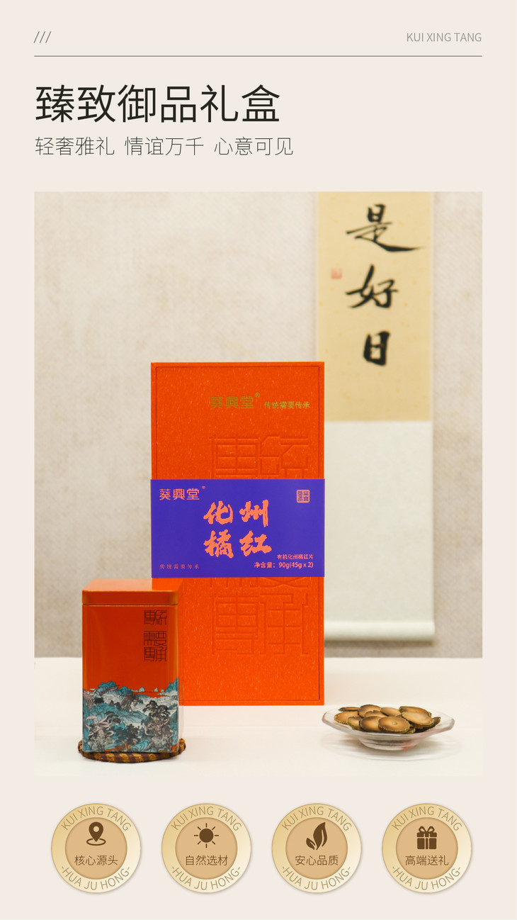 【直送到家】90g葵興堂20有机化州橘红片礼盒装