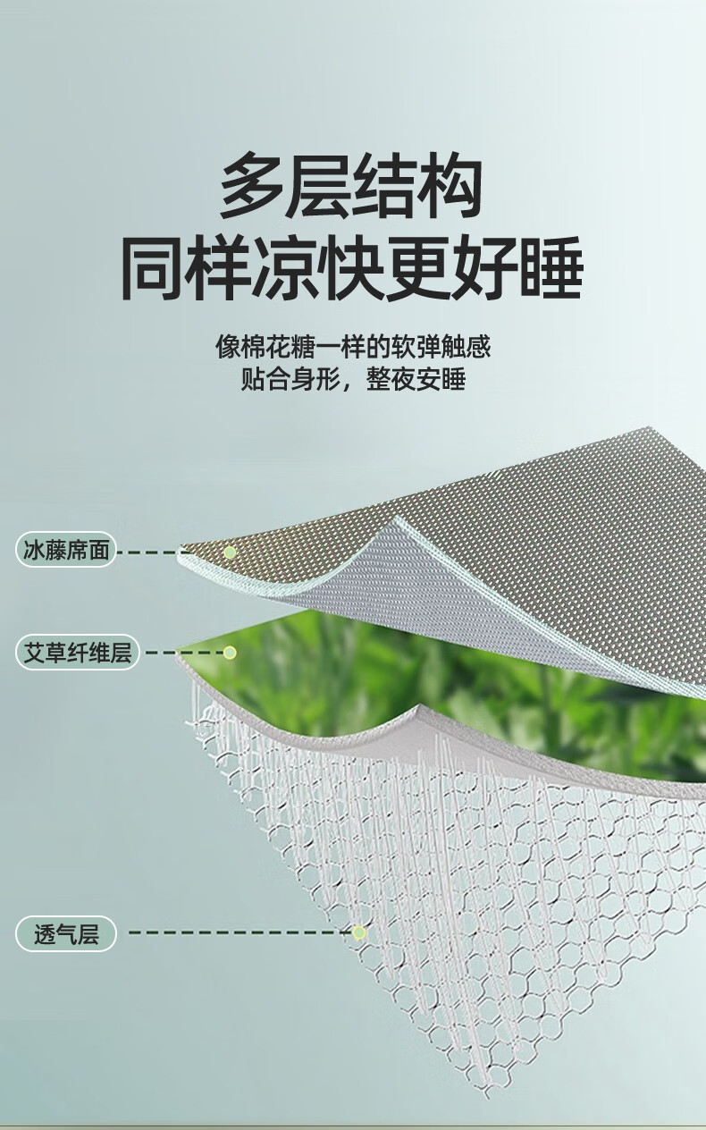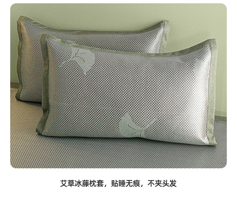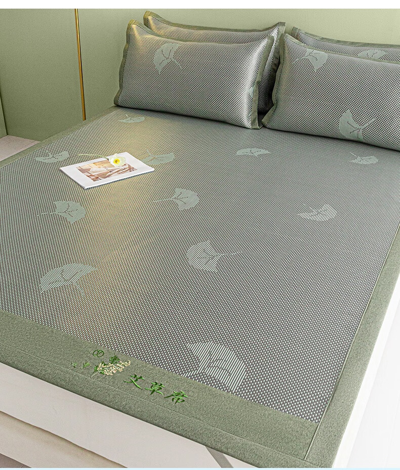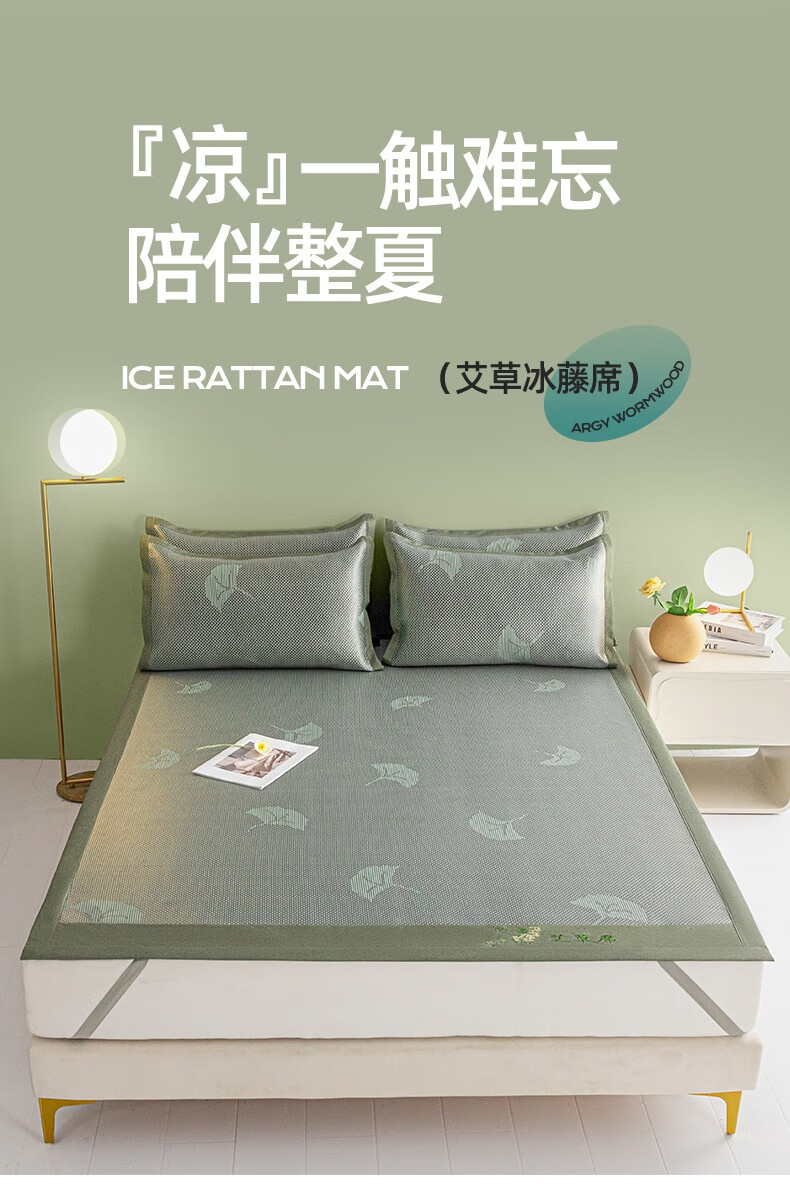 百丽安娜(Belle Anna)艾草香薰冰藤席凉席三件套-红叶绿