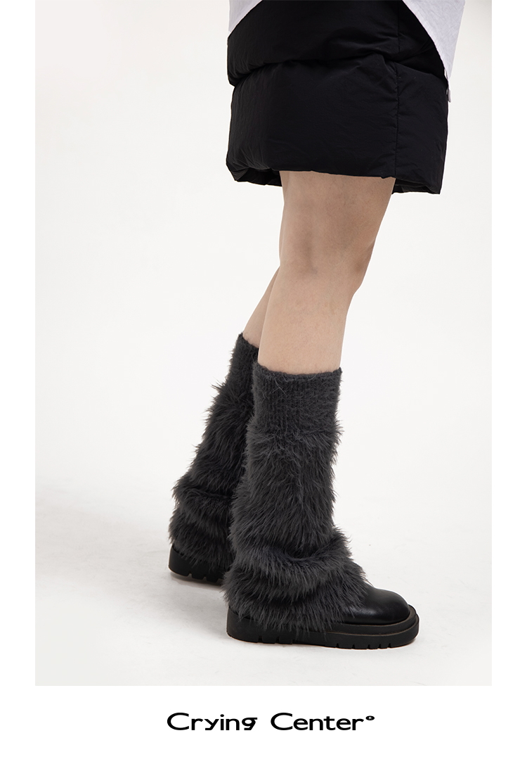 CryingCenter 奶乎乎三色仿貂毛毛织腿套堆堆袜套 哭喊中心