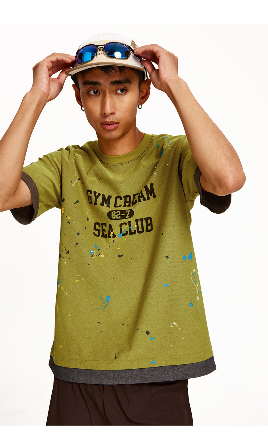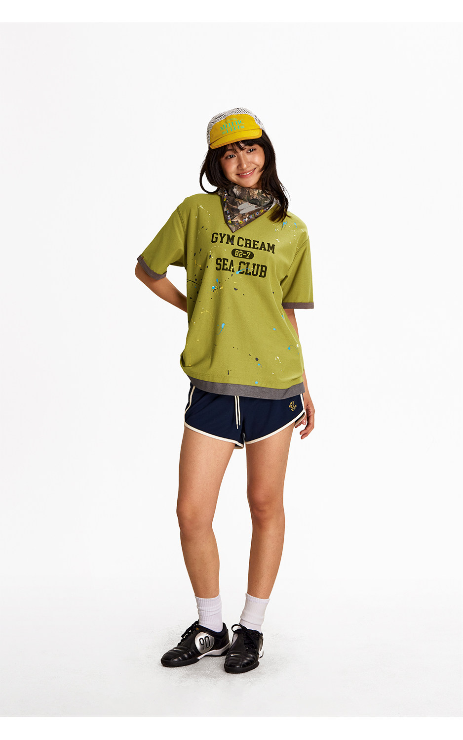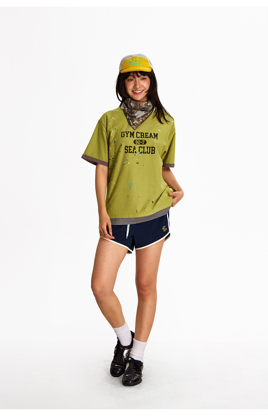 CryingCenter 假两件卷边袖宽松休闲短袖T 哭喊中心