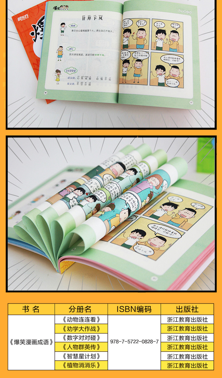 2.爆笑漫画演绎成语,贴近小学生日常:市场上大多数成语类书籍都集中在深奥的历史故事里,本产品则用漫画的形式将成语放在日常生活的语境中,孩子背、用成语都变得很容易。