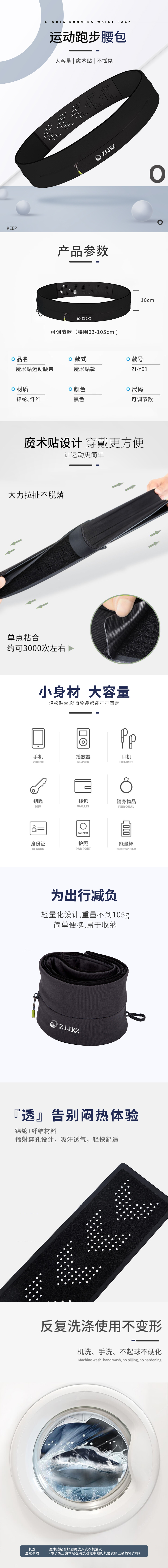 ZiJKZ子泽 运动腰包 男女款健身跑步手机袋多功能跑步旅行包 黑色 Zi-Y01