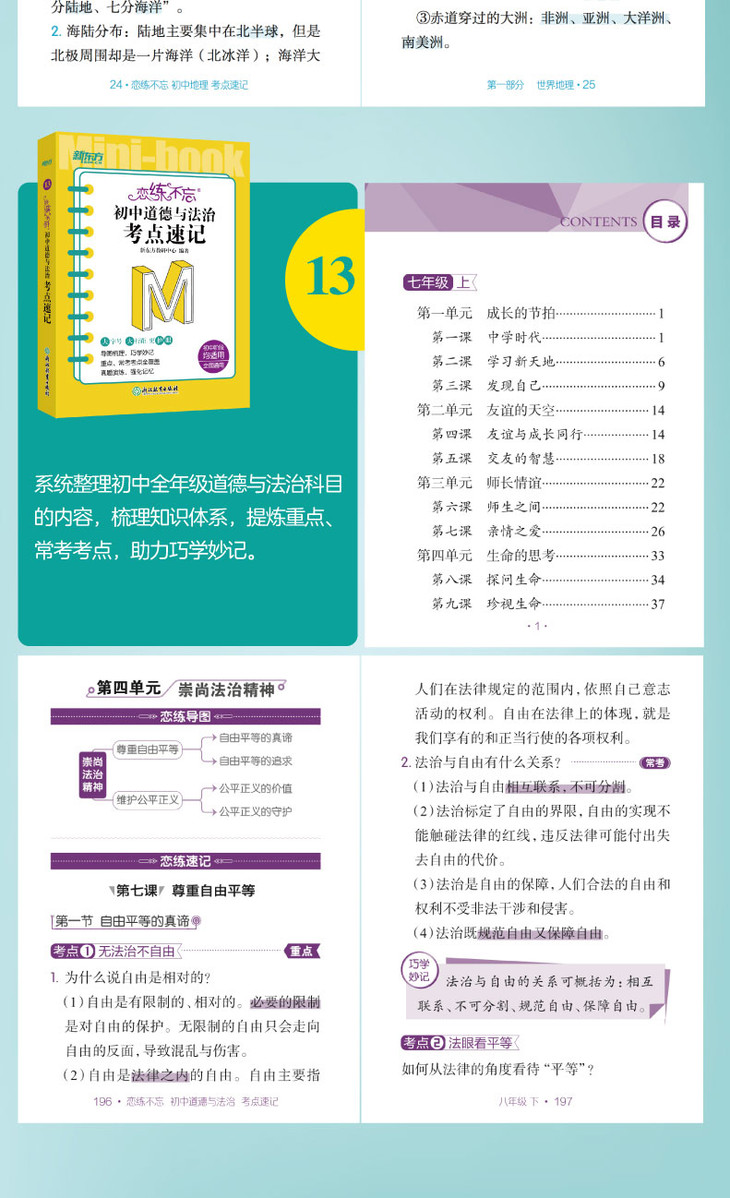 《恋练不忘 初中地理 考点速记》为考点记忆类的口袋书,初中七、八年级适用。该书采用小开本设计,方便学生利用碎片化时间背诵知识。