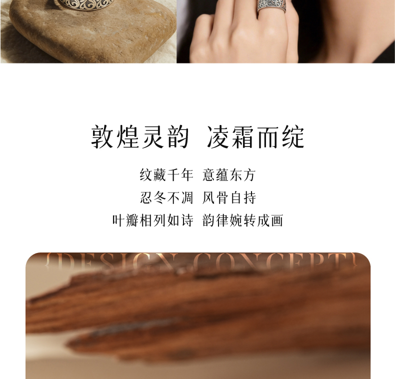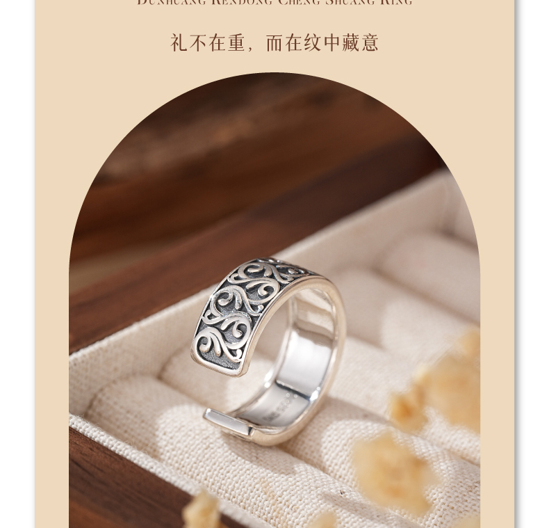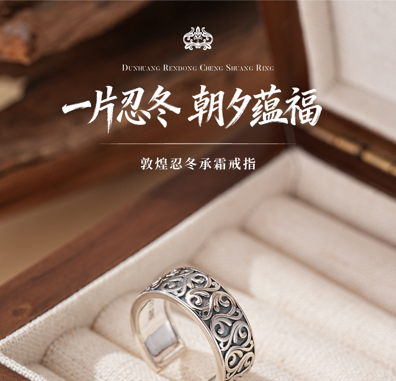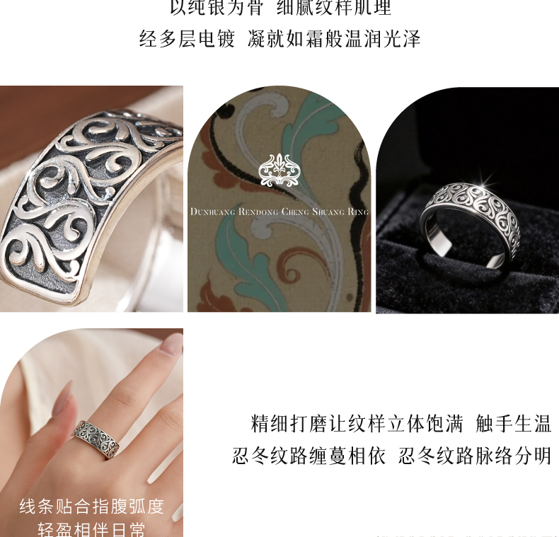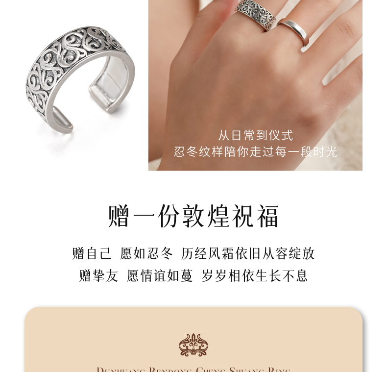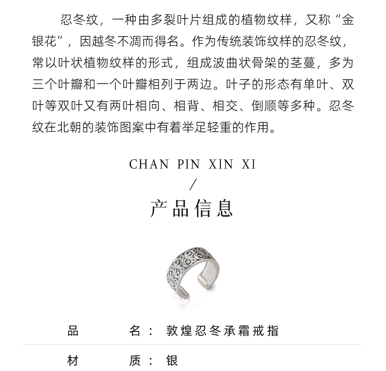 敦煌研究院【敦煌忍冬承霜戒指】 文创戒指开口可调节纯银指环送朋友