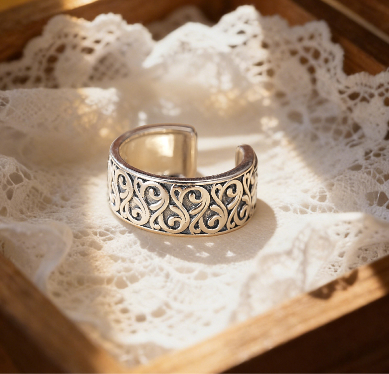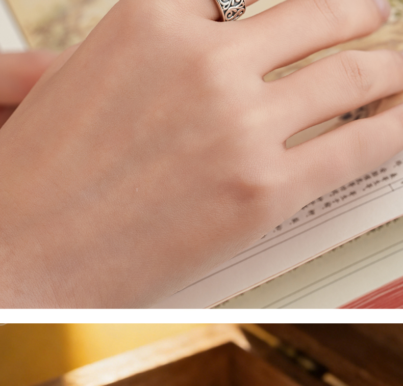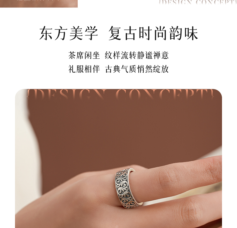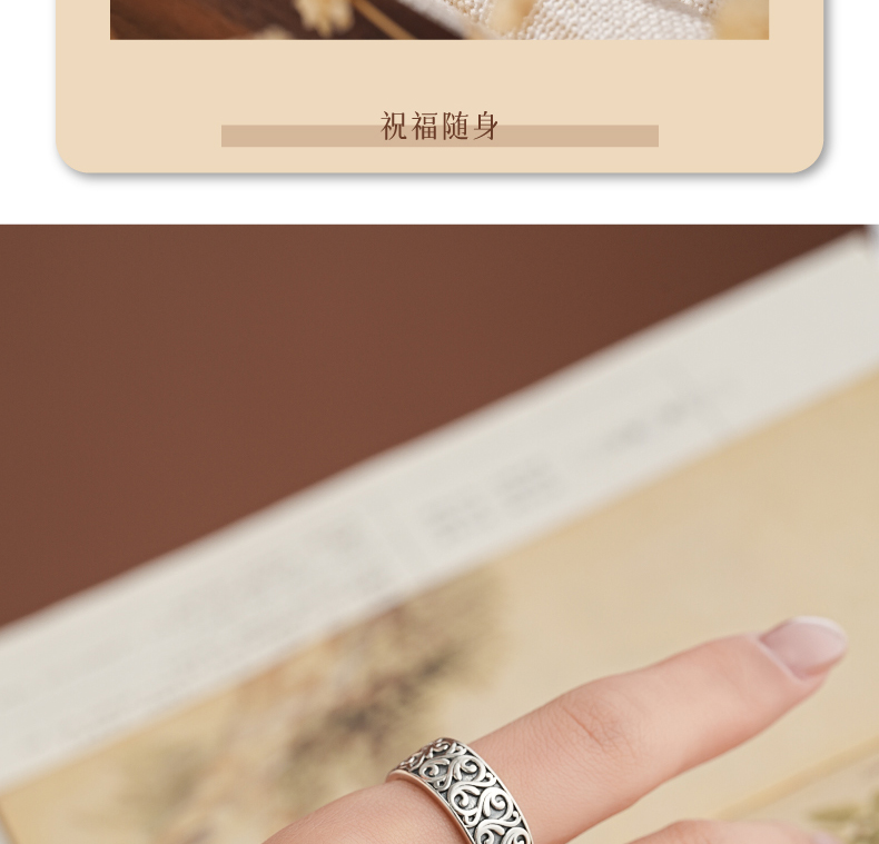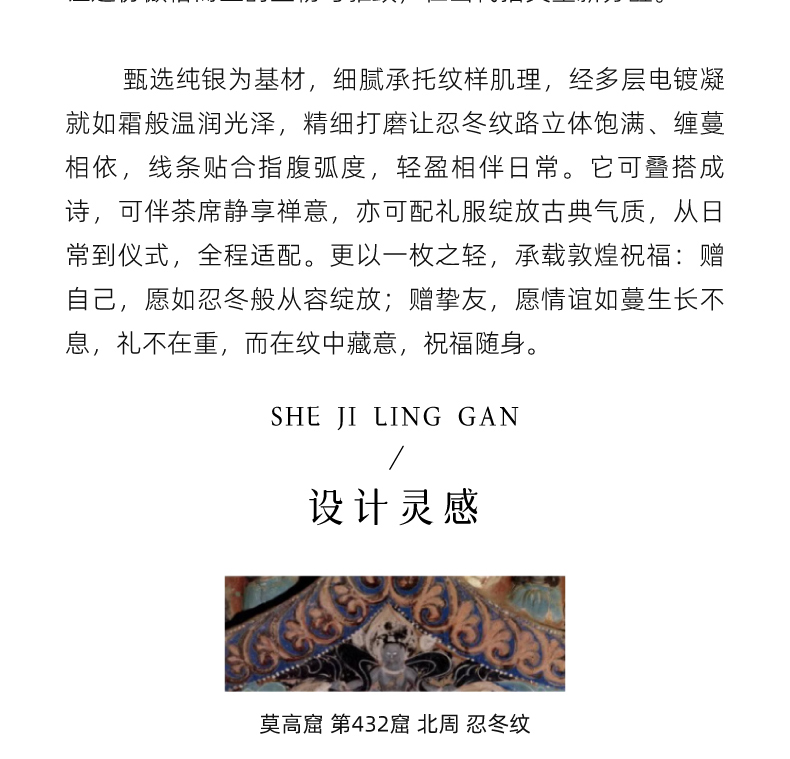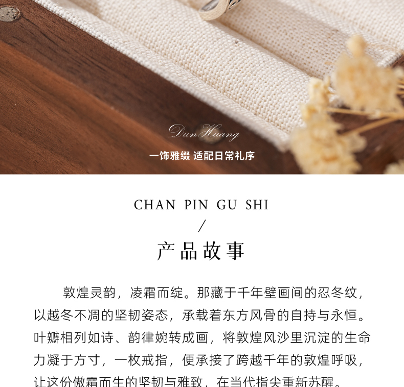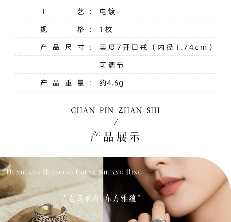 敦煌研究院【敦煌忍冬承霜戒指】 文创戒指开口可调节纯银指环送朋友