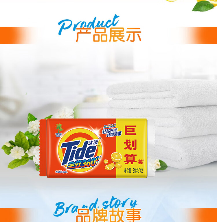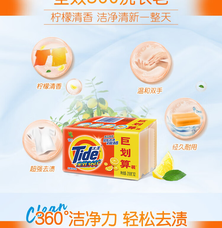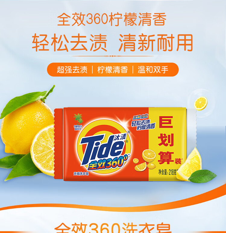 汰渍全效洗衣皂218G*2巨划算装(柠檬)(到手4块)