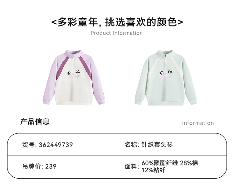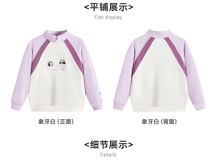安踏儿童冬季新品女小童户外熊猫套头衫内搭外穿时尚百搭柔软亲肤362449739