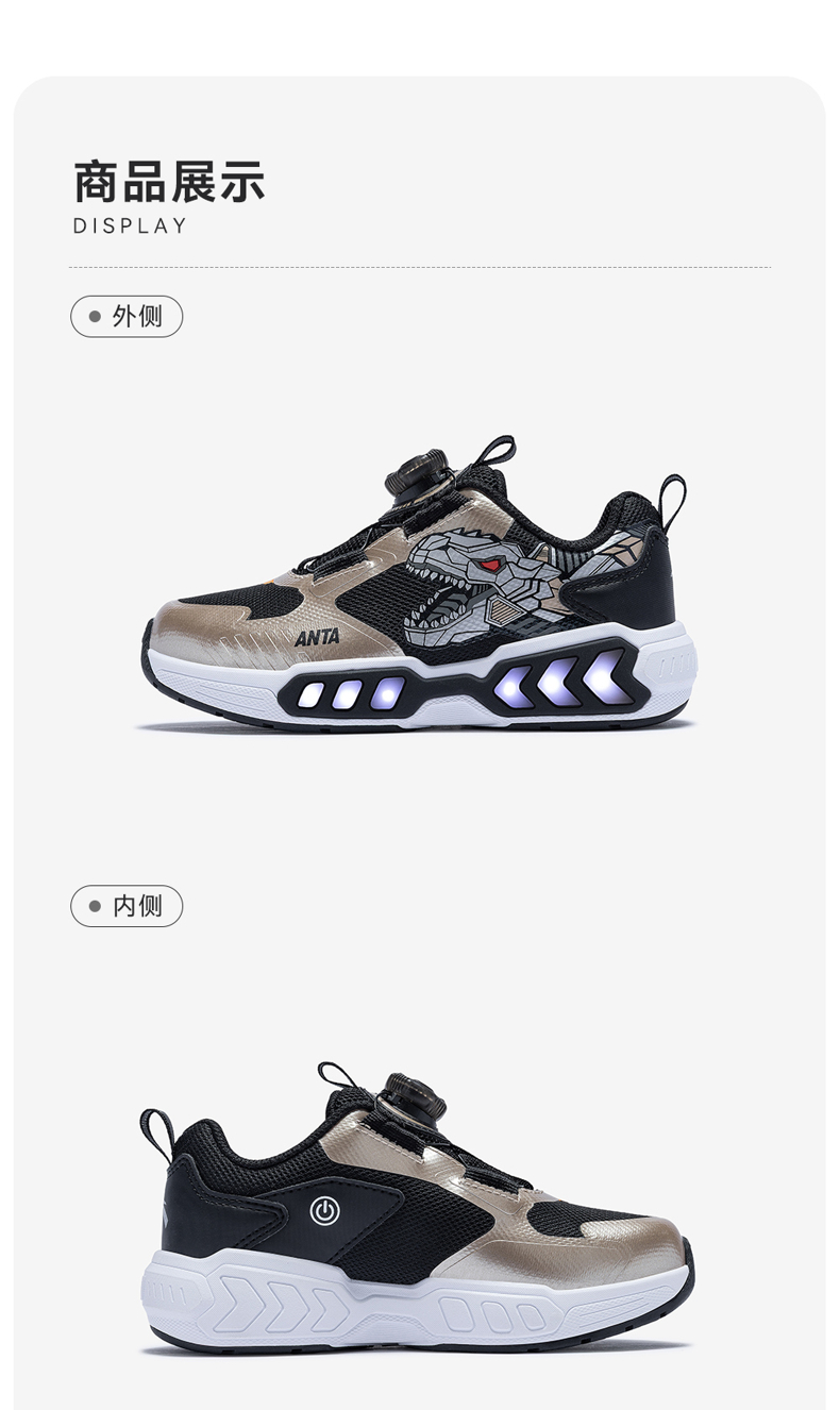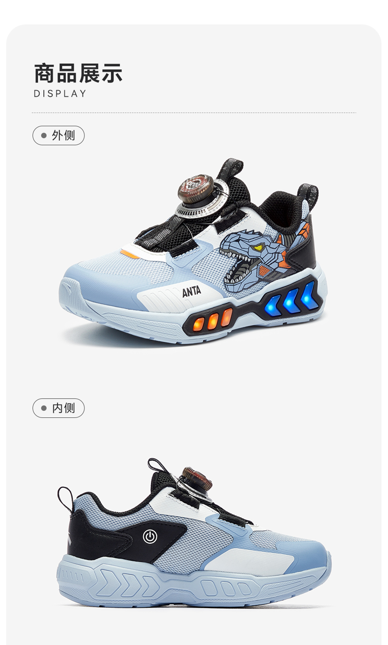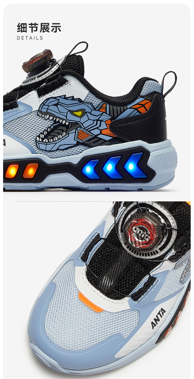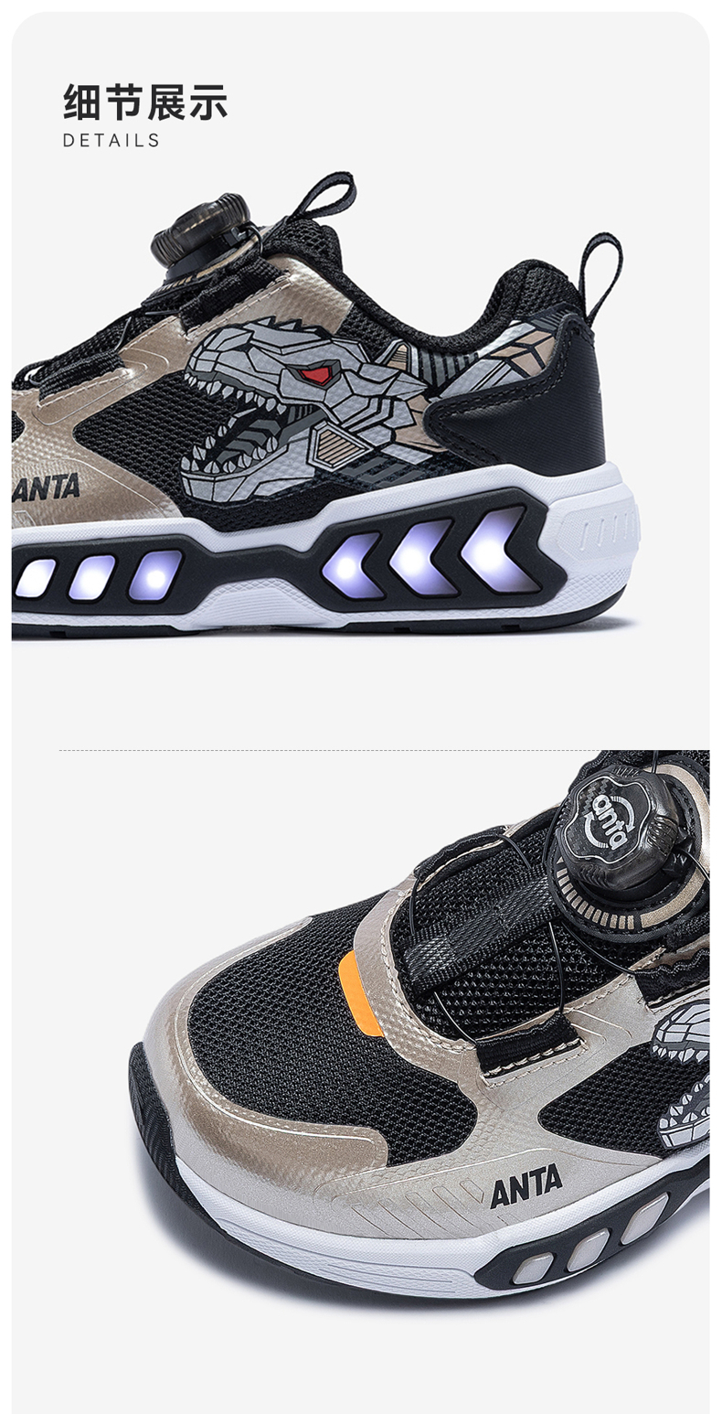 恐龙灯鞋|安踏儿童运动鞋男小童鞋2025秋冬机甲闪灯鞋旋钮运动鞋312549918