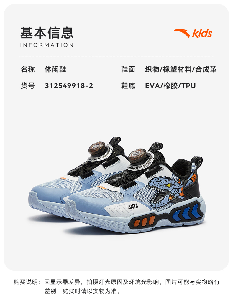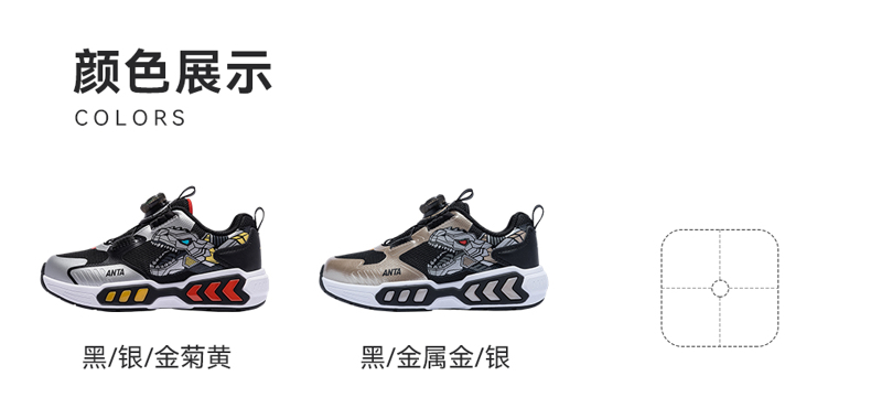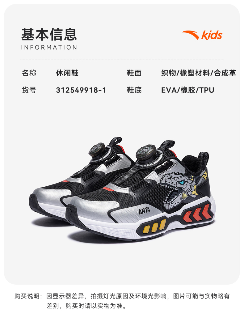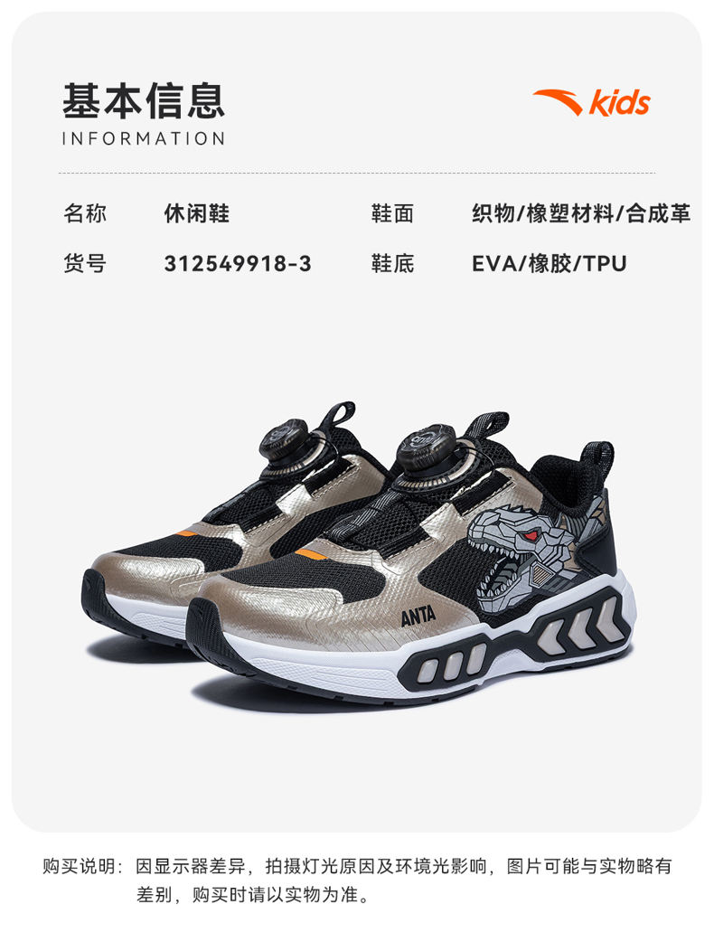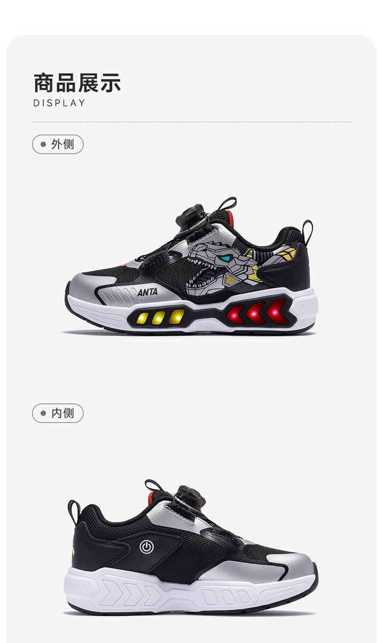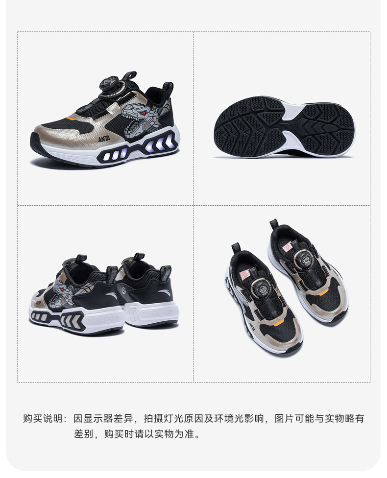恐龙灯鞋|安踏儿童运动鞋男小童鞋2025秋冬机甲闪灯鞋旋钮运动鞋312549918