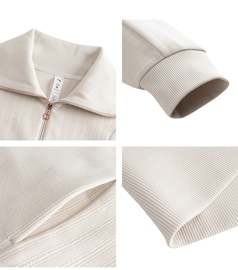 安踏奥特莱斯针织外套女春季翻领休闲长袖宽松运动上衣162517712