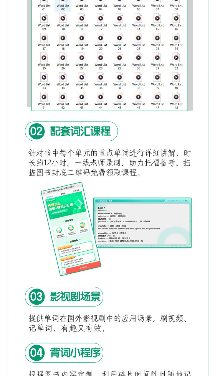 本书还提供丰富的线上学习资源,包括配套音频、核心词汇课程、定制背词系统、影视剧场景,全方位、立体化地助力托福备考。