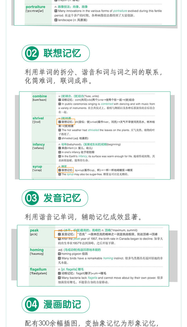 ★ 采用“词根+联想”记忆法,配以幽默、生动的漫画插图,帮助考生摆脱死记硬背,科学、有效地记忆单词。