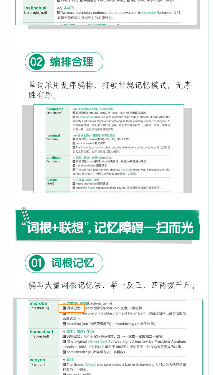 本书以“词根+联想”记忆法为主,辅以大量与真题难度相当的例句,帮助考生结合语境记单词。同时,本书配有生动幽默的漫画插图,将原本枯燥的单词记忆变得轻松、有趣。