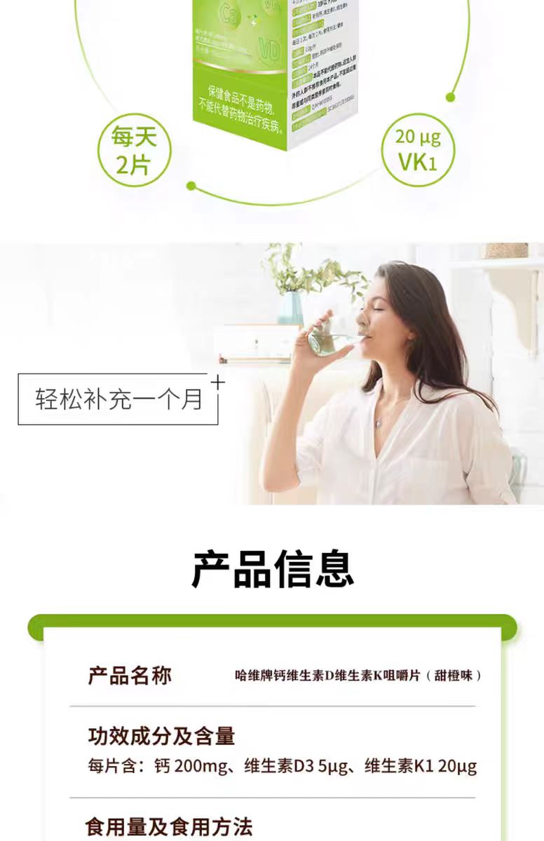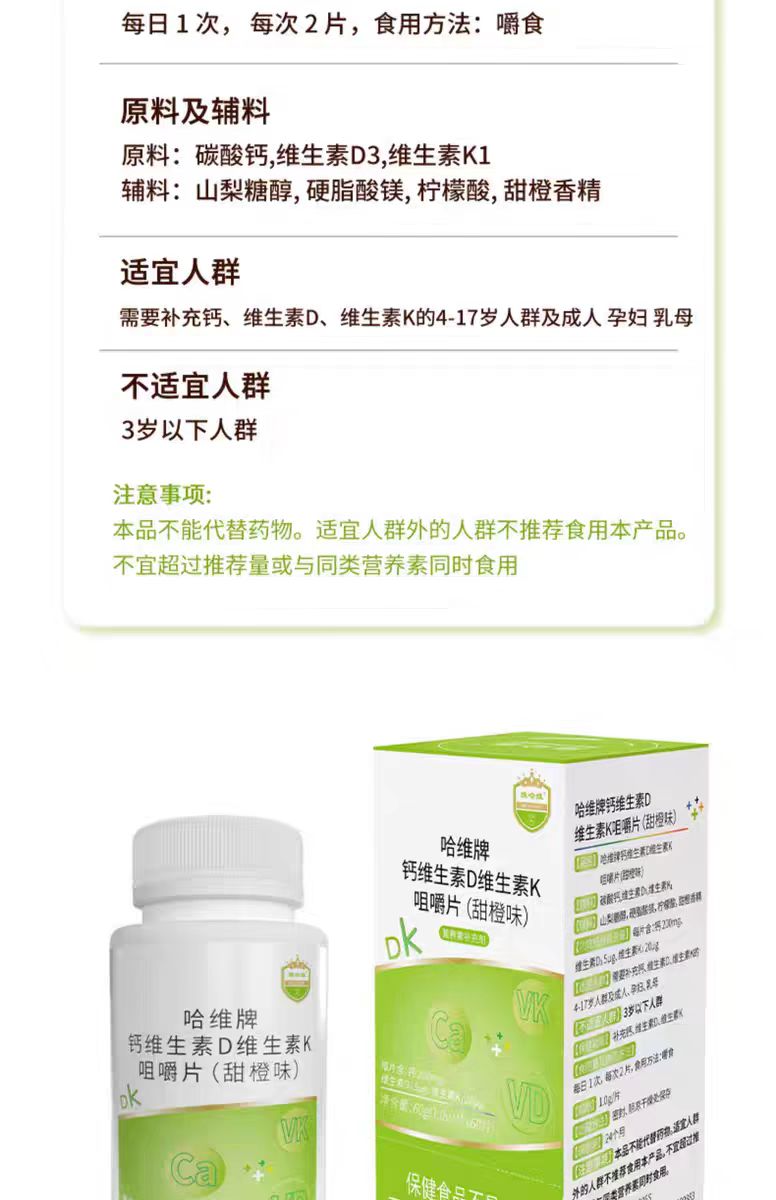 维哈维维生素DK咀嚼片钙片磷酸钙(甜橙味)