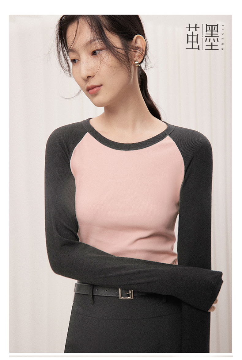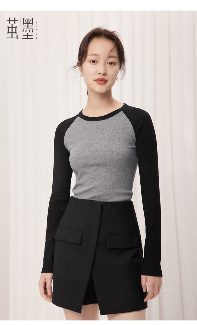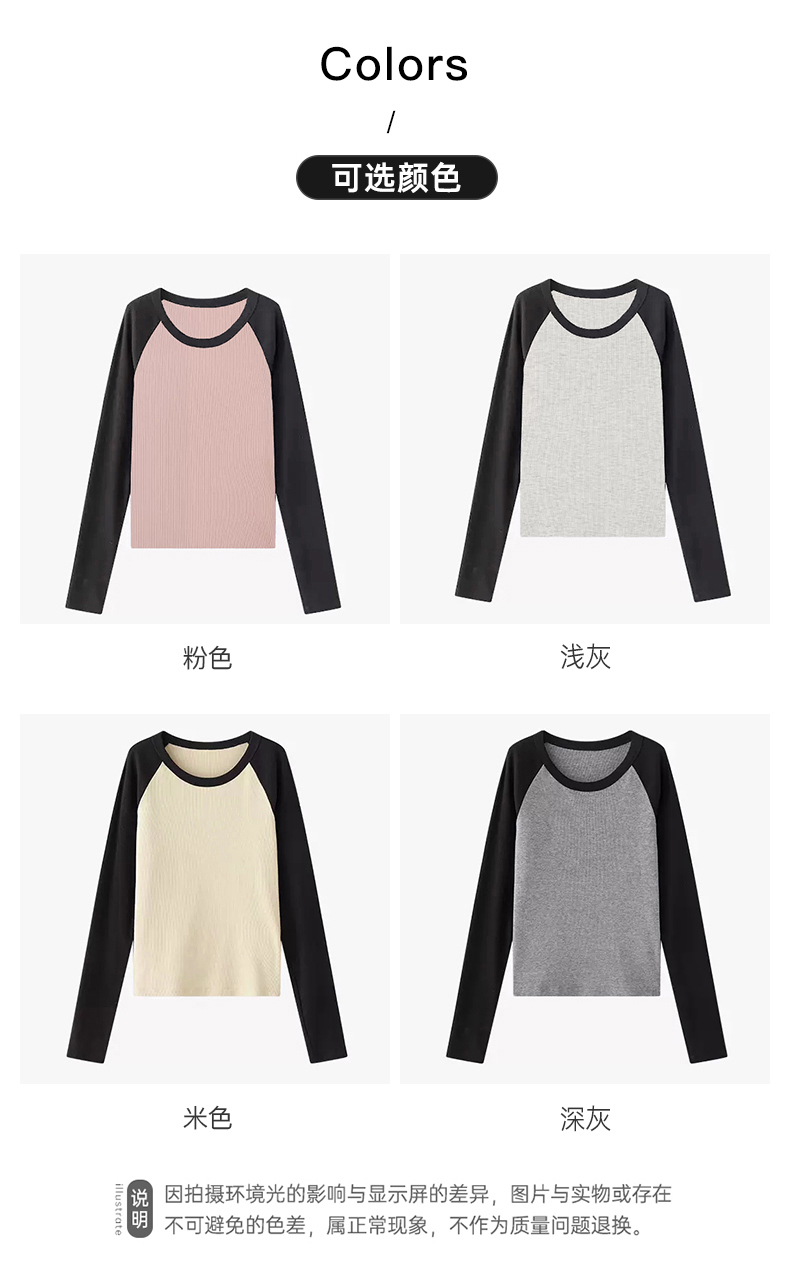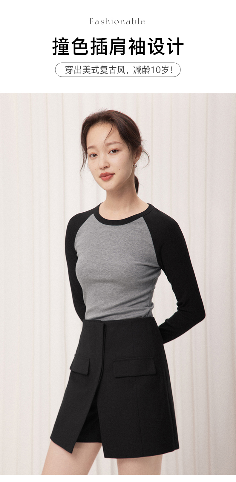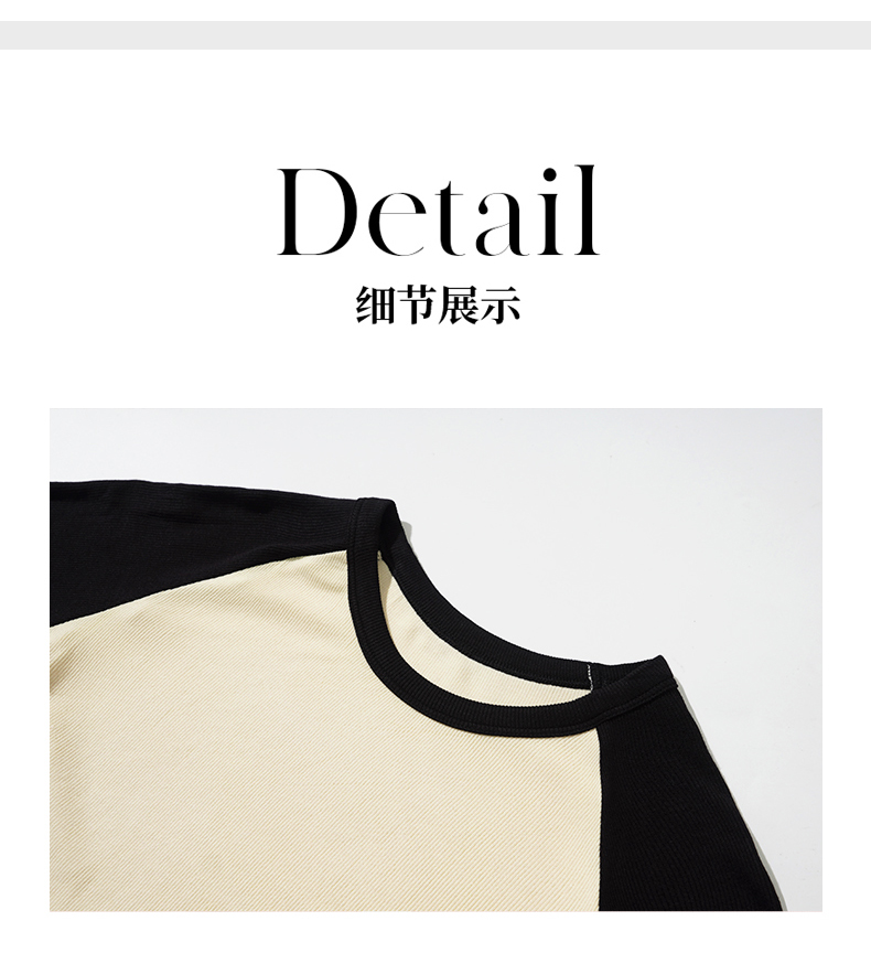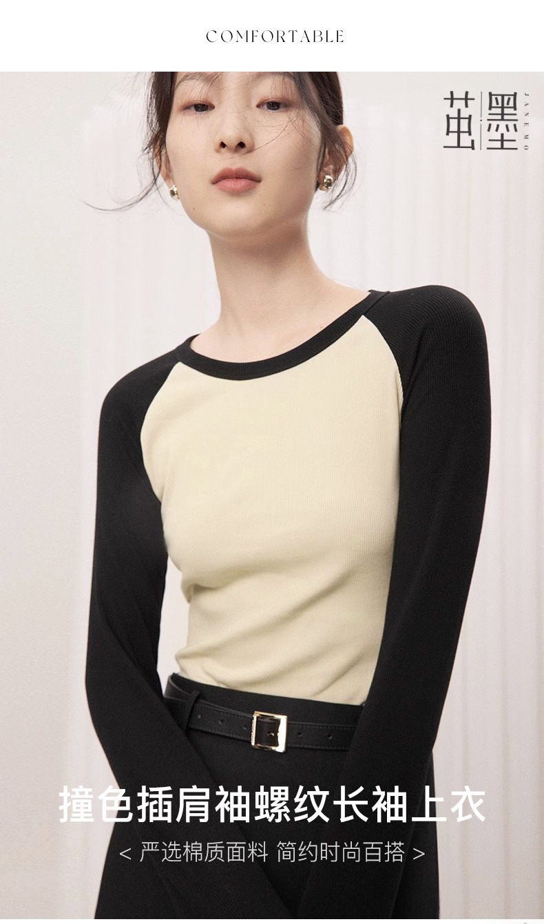 优选丨【美式复古风】茧墨 撞色插肩袖螺纹长袖上衣 舒适亲肤 吸汗透气 显高显瘦 经典百搭